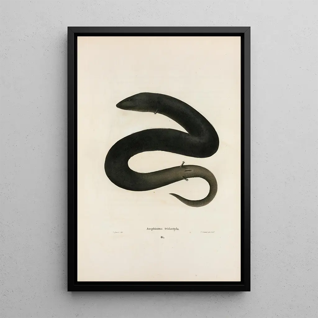 Amphiume mit drei Fingern: Ein Blick auf die aquatische Fauna „Amphiume mit drei Fingern“ von John Edwards Holbrook ist ein faszinierendes kunstwerk, das einen beeindruckenden Amphibien zeigt, der oft wenig bekannt ist. Der kunstdruck offenbart die zarten Details dieses Wasserlebewesens, mit seinen dunklen Tönen und subtilen Reflexen, die die Tiefen der Sümpfe widerspiegeln. Die Technik des Künstlers, die Realismus und Empfindsamkeit verbindet, ermöglicht es, die geheimnisvolle Atmosphäre des Lebensraums des Amphiums zu spüren. Jedes Element des Gemäldes scheint eine Geschichte zu erzählen und lädt den Betrachter ein, die Wunder der aquatischen Natur zu entdecken. John Edwards Holbrook: Ein Entdecker der Natur John Edwards Holbrook, ein Naturforscher und Illustrateur des 19. Jahrhunderts, spielte eine entscheidende Rolle bei der Dokumentation der amerikanischen Fauna. Seine Arbeit zeichnet sich durch einen wissenschaftlich präzisen Ansatz aus, der dennoch eine unbestreitbare künstlerische Dimension bewahrt. Holbrook wurde durch die Fortschritte seiner Zeit in Biologie und Ökologie beeinflusst, was ihm ermöglichte, genaue und informative kunstdrucke zu erstellen. Seine Werke, wie der des Amphiums, zeugen von seinem Engagement, die Öffentlichkeit für die Vielfalt und den Reichtum der wilden Natur zu sensibilisieren. Ein dekoratives Kunstwerk mit vielfältigen Vorzügen Der kunstdruck „Amphiume mit drei Fingern“ ist ein einzigartiges dekoratives Element für verschiedene Räume, sei es ein Büro, ein Wohnzimmer oder ein Schlafzimmer. Seine Druckqualität und die Liebe zum Detail machen ihn zu einem Kunstwerk, das ins Auge fällt und Interesse weckt. Wenn Sie dieses Bild in Ihr Zuhause integrieren, verleihen Sie Ihrem Interieur eine Note von Originalität und Raffinesse, während Sie die Schönheit der aquatischen Fauna feiern. Die ästhetische Anziehungskraft dieses Werks, mit seinen reichen Nuancen und seinem faszinierenden Motiv, macht es zur idealen Wahl für Natur- und Kunstliebhaber.