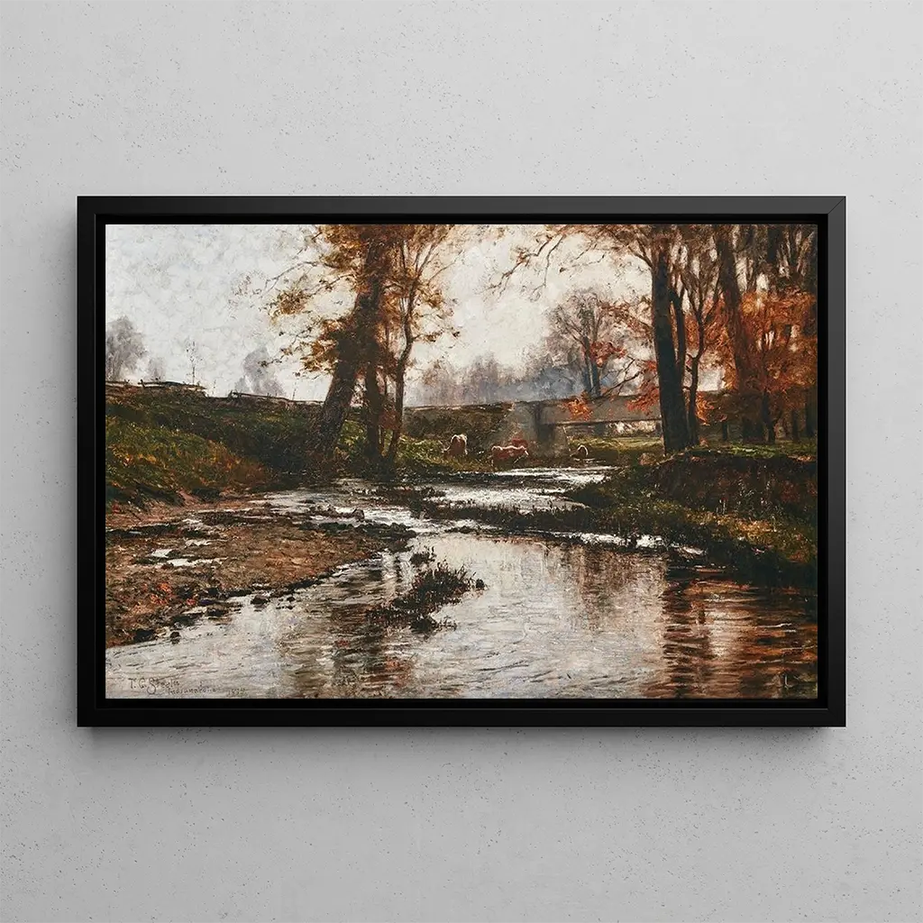 Ruisseau angenehmer : eine bucolische flucht im herzen der natur In "Ruisseau agréable" entführt uns Theodore Clement Steele in eine ruhige landschaft, in der die natur mit strahlkraft zum ausdruck kommt. Die lebendigen farben und die zarten nuancen von grün und blau verschmelzen harmonisch und wecken die frische eines frühlingsmorgens. Die impressionistische technik von Steele, mit ihren flüssigen pincelstrichen, schafft eine atmosphäre der ruhe und lädt den betrachter ein, in dieses gemälde einzutauchen. Das licht spielt eine wesentliche rolle, indem es den bach und die umgebenden blätter beleuchtet, während die bewegung des wassers eine beruhigende dynamik in das gesamtbild bringt. Theodore Clement Steele : ein meister des amerikanischen impressionismus Theodore Clement Steele, eine ikonische figur des amerikanischen impressionismus, hat die schönheit der landschaften von indiana und darüber hinaus eingefangen. Geboren 1847, wurde er von den großen europäischen meistern beeinflusst, entwickelte aber einen einzigartigen stil, der seine liebe zur natur widerspiegelt. Steele war ein aktives mitglied der kunstgruppe von indiana und trug zur entstehung einer regionalen künstlerischen identität bei. Sein werk, geprägt von einer lebendigen palette und einer empfindlichkeit für das licht, spielte eine entscheidende rolle in der entwicklung der amerikanischen landschaftskunst im anbruch des 20. jahrhunderts. Eine dekorative anschaffung mit vielfältigen vorteilen Der kunstdruck von "Ruisseau agréable" ist ein ideales dekoratives stück für jeden raum, sei es ein wohnzimmer, ein büro oder ein schlafzimmer. Seine druckqualität garantiert eine treue wiedergabe der farben und details des originalwerks und bringt einen touch von natur und ruhe in ihr zuhause. Dieses gemälde lädt zur betrachtung ein, schafft eine beruhigende und inspirierende atmosphäre. Mit seinem unbestreitbaren ästhetischen reiz fügt es sich nahtlos in verschiedene einrichtungsstile ein, vom klassischen bis zum zeitgenössischen, und bereichert so ihre wohnumgebung.