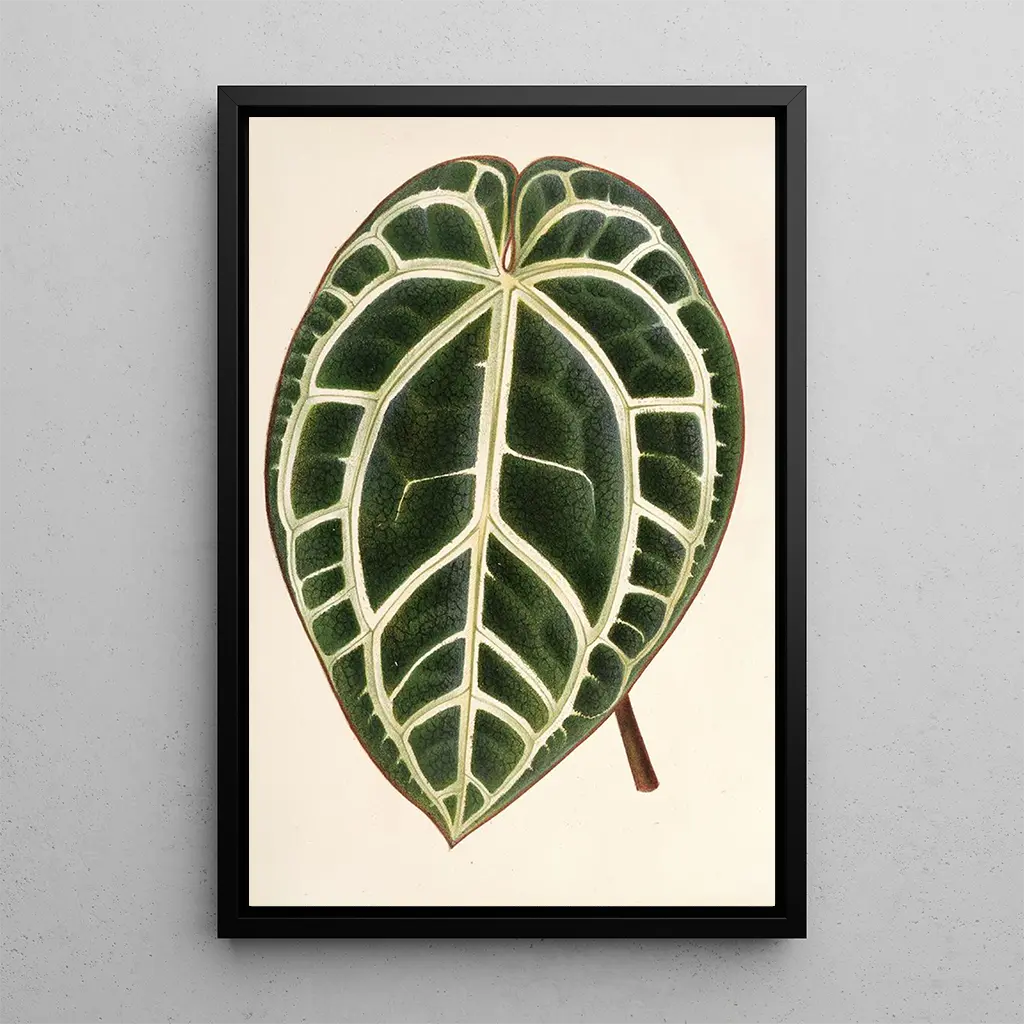 Die reproduction des Anthurium crystallinum ist ein dekoratives Stück, das sich harmonisch in verschiedene Räume integriert, sei es im Wohnzimmer, im Büro oder im Schlafzimmer. Die Qualität der Reproduktion garantiert eine Treue zu den Farben und Details des Originalwerks und bringt einen Hauch Natur in Ihr Zuhause. Die ästhetische Anziehungskraft dieses Gemäldes liegt in seiner Fähigkeit, eine tropische Atmosphäre zu vermitteln, dabei aber zugänglich und elegant zu bleiben. Mit dieser Leinwand entscheiden Sie sich für eine Dekoration, die nicht nur verschönert, sondern auch eine Geschichte erzählt – die einer faszinierenden Pflanze und ihres visionären Schöpfers.