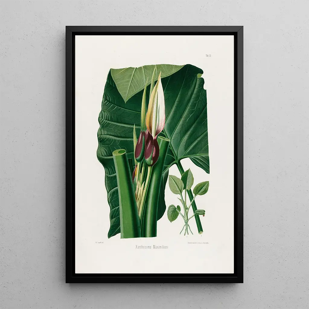 Aroideae Maximilianae Pl32 : eine Hommage an die pflanzliche Vielfalt „Aroideae Maximilianae Pl32“ von Heinrich Wilhelm Schott ist ein kunstwerk, das die Vielfalt und Komplexität der pflanzen feiert. Diese fesselnde illustration zeigt eine pflanze mit großer visueller reichhaltigkeit, mit organischen formen und farben, die die üppigkeit der tropen hervorrufen. Die detaillierten, sorgfältig ausgeführten details ermöglichen es, jede nervatur und jeden farbton zu schätzen, und schaffen eine atmosphäre, die sowohl beruhigend als auch inspirierend ist. Die aquarelltechnik, meisterhaft von Schott beherrscht, verleiht diesem werk eine leichtigkeit und flüssigkeit, die zur flucht in eine bezaubernde pflanzenwelt einlädt. Heinrich Wilhelm Schott : ein künstler im dienst der wissenschaft Heinrich Wilhelm Schott, geboren 1794, gilt als einer der pionier der botanischen illustration. Sein werk ist geprägt von einer leidenschaft für die botanik und dem willen, die schönheit der pflanzen zu ehren. Im 19. jahrhundert aktiv, wurde er von den wissenschaftlichen erkundungen seiner zeit beeinflusst, was seinen willen, die tropische flora zu dokumentieren, nährte. „Aroideae Maximilianae Pl32“ zeigt nicht nur sein künstlerisches talent, sondern auch sein engagement für die wissenschaft, und macht ihn zu einer unverzichtbaren figur im bereich der botanischen illustration. Eine dekorative anschaffung mit vielfältigen vorteilen Die kunstdruck von „Aroideae Maximilianae Pl32“ ist eine dekorative wahl, die die leidenschaftlichen natur- und pflanzenliebhaber begeistern wird. Ob in einem modernen oder klassischen interieur, dieses bild bringt einen hauch frische und eleganz. Die druckqualität garantiert eine bemerkenswerte treue bei farben und details des originalwerks, und ermöglicht es, die schönheit dieser pflanze voll zu genießen. Mit seinem ästhetischen reiz wird dieser kunstdruck zu einem zentralen dekorationsstück, das neugier und bewunderung bei allen weckt, die ihn entdecken.