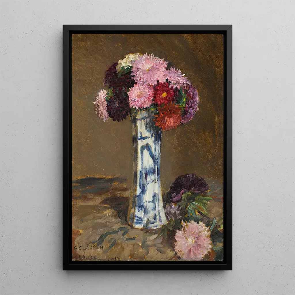 Sir George Clausen, britischer Maler des frühen 20. Jahrhunderts, ist bekannt für seine Fähigkeit, Licht und Atmosphäre in seinen Werken einzufangen. Beeinflusst von der impressionistischen Bewegung, entwickelte er einen einzigartigen Stil, der Realismus und Poesie verbindet. Clausen hat häufig Szenen des ländlichen Lebens dargestellt und die Schönheit englischer Landschaften hervorgehoben. Seine Karriere, geprägt von zahlreichen Ausstellungen und Auszeichnungen, zeugt von seiner Bedeutung in der Kunstwelt. Asters ist Teil einer Phase, in der der Künstler die Natur mit gesteigerter Sensibilität erforscht und so seinen tiefen Respekt für die Umwelt zeigt.