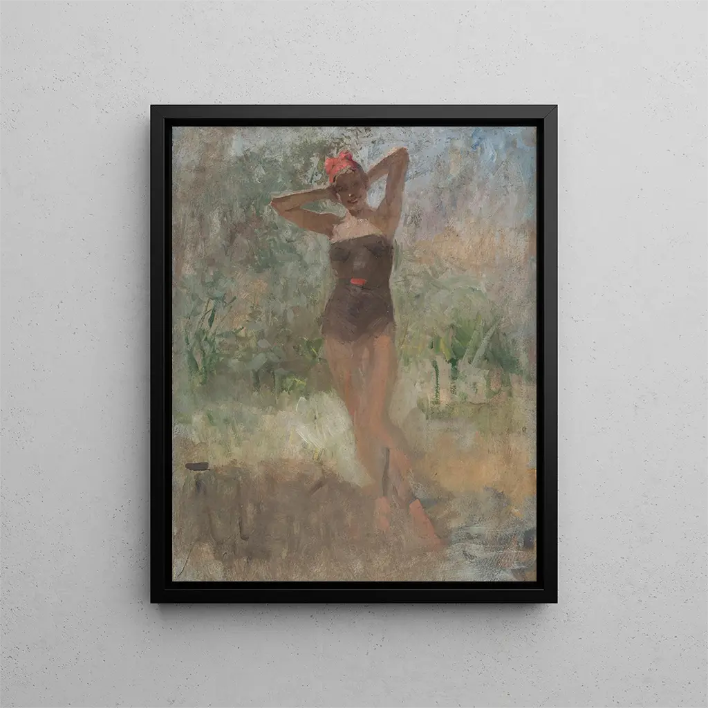 Reproduktion Badegäste - Brynolf Wennerberg – Faszinierende Einführung Im weiten Panorama der Kunstgeschichte hallen bestimmte Werke mit solcher Intensität wider, dass sie die Essenz der Menschheit selbst einzufangen vermögen. "Badegäste" von Brynolf Wennerberg gehört dazu. Dieses Werk, geprägt von Sanftheit und Gelassenheit, lädt uns ein, in eine Welt einzutauchen, in der die Zeit stillzustehen scheint. Durch die eleganten Figuren und das Spiel mit Licht entführt uns der Künstler in einen Moment der Geselligkeit und des Teilens, in dem Natur und Mensch in einer zarten Harmonie tanzen. Der Reiz dieser Szene liegt nicht nur in ihrer visuellen Schönheit, sondern auch in der Tiefe der Emotionen, die sie weckt. Stil und Einzigartigkeit des Werks Der Stil von Wennerberg zeichnet sich durch eine zugleich realistische und impressionistische Herangehensweise aus, bei der das Licht eine zentrale Rolle spielt. In "Badegäste" spiegeln die Farbnuancen das Sonnenlicht auf dem Wasser wider und schaffen eine fast greifbare Atmosphäre. Die Figuren, in natürlichen und entspannten Posen dargestellt, scheinen in ihrer Umgebung aufzugehen und zeugen von einer Intimität mit der Natur, die den bloßen Rahmen des Gemäldes übersteigt. Die feinen Details, von Wasserperlen bis zu Lachern, offenbaren eine technische Meisterschaft, die dem Werk eine lebendige Dimension verleiht. Jeder Blick, jede Geste ist eine Einladung, die Freude und Leichtigkeit des Lebens zu spüren, wodurch dieses Gemälde zu einer wahren Ode an das Leben wird. Der Künstler und sein Einfluss Brynolf Wennerberg, eine bedeutende Figur des schwedischen 19. Jahrhunderts, prägte seine Epoche durch sein außergewöhnliches Talent und seine einzigartige künstlerische Vision. Ausgebildet an der Königlichen Kunstakademie Stockholm, nahm er die künstlerischen Strömungen seiner Zeit auf und entwickelte gleichzeitig eine persönliche Stimme. Seine Arbeiten, oft mit Themen der Natur und Geselligkeit, spiegeln eine tiefe Sensibilität für menschliche Interaktionen wider. Wennerberg beeinflusste zudem zahlreiche Künstler seiner Generation, die er dazu anregte, die Beziehungen zwischen Mensch und Umwelt zu erforschen. Durch seine Werke trug er dazu bei, das skandinavische Kunstgut zu bereichern, und hinterließ ein Erbe, das weiterhin inspiriert und fasziniert.