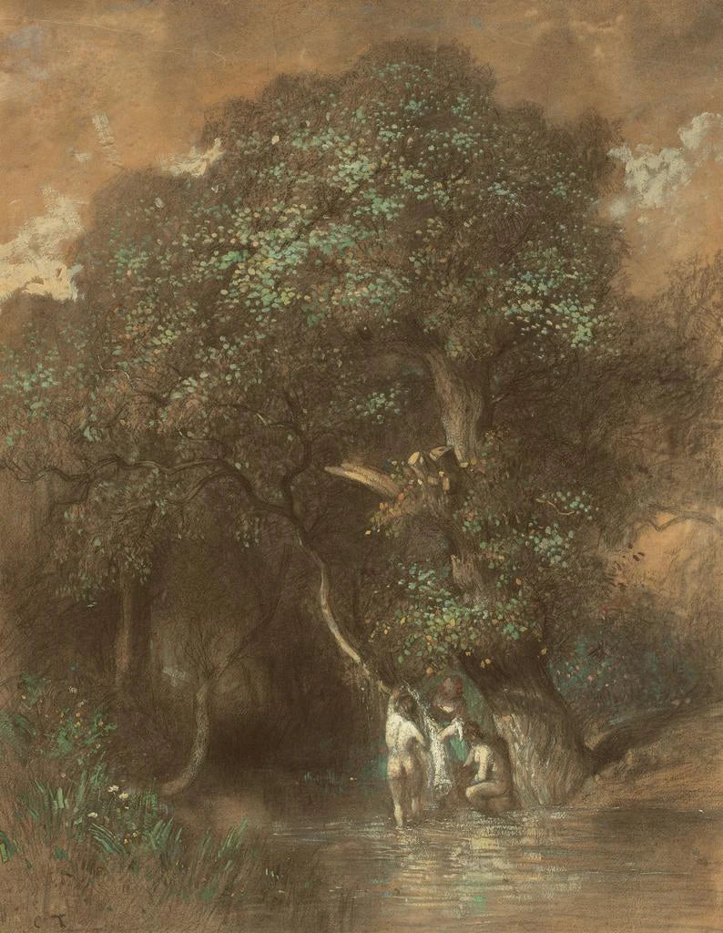 Kunstdruck | Badende in der Nähe einer riesigen Eiche - Constant Troyon