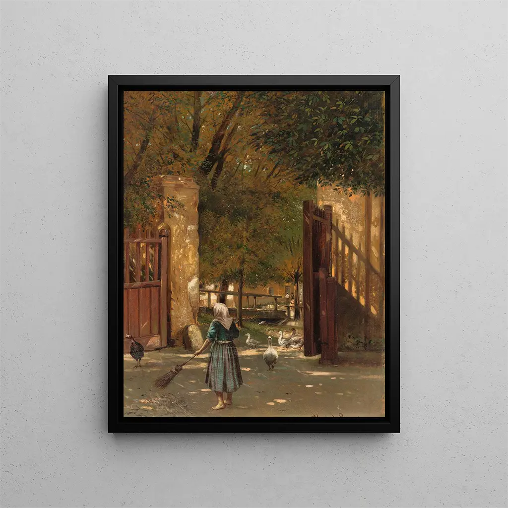 In der faszinierenden Welt der Kunst gelingt es einigen Werken, die Essenz des täglichen Lebens einzufangen und gleichzeitig eine unvergleichliche emotionale Tiefe zu bieten. "Balayer la cour - Eduard Majsch" ist eines dieser Werke, das durch seine sorgfältige und poetische Darstellung den Betrachter einlädt, die Schönheit einfacher Gesten zu bewundern. Dieses Werk, durchdrungen von Licht und Bewegung, erinnert an eine Szene des häuslichen Lebens, in der das Banale in das Sublime verwandelt wird und so die verborgene Magie im Alltag offenbart. Beim Eintauchen in dieses Werk wird man in einen schwebeartigen Moment versetzt, in dem die Zeit zu verlangsamen scheint, um den gegenwärtigen Augenblick zu würdigen.