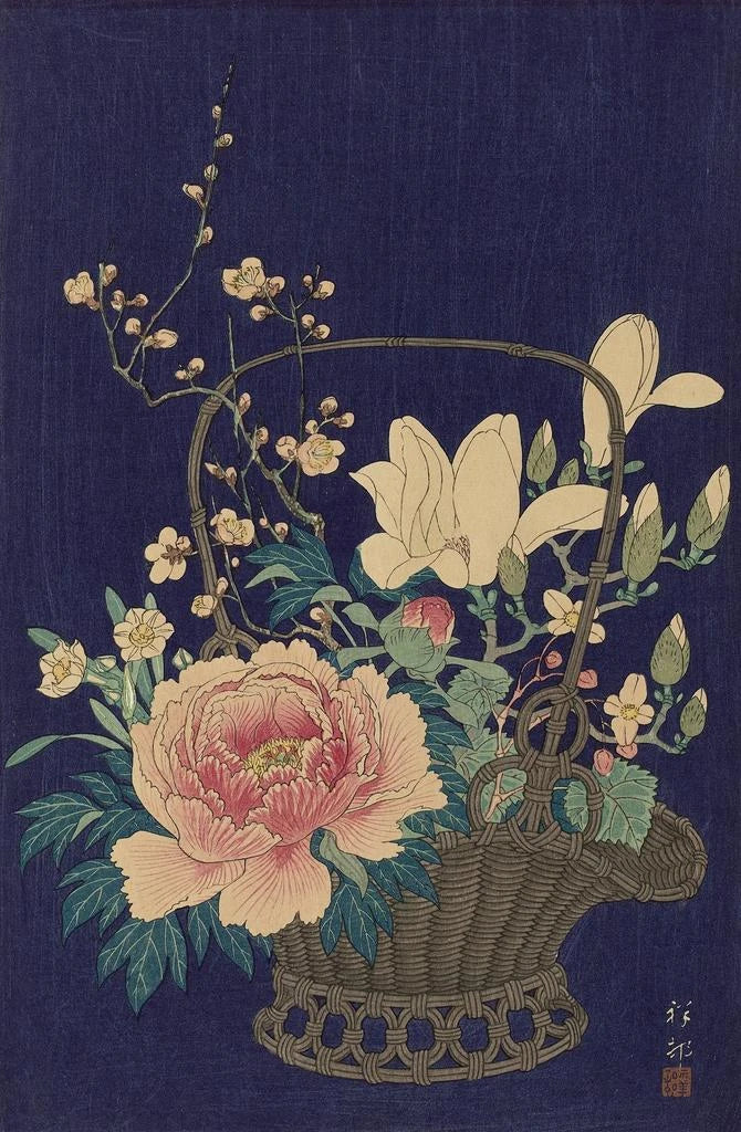 Kunstdruck | Blumenkorb aus Bambus - Ohara Koson
