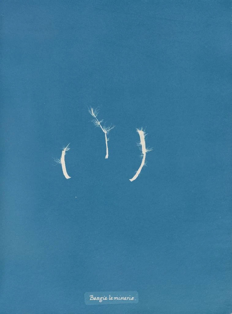 Die Einzigartigkeit von "Bangia laminariae" liegt in ihrem neuartigen Ansatz in der Botanik. Atkins wählte das Cyanotypie-Verfahren, eine Technik, die es ermöglicht, tiefblaue und lebendige Drucke zu erzeugen. Diese Wahl ist keineswegs zufällig, da sie sowohl die Farbe der Meere und Ozeane evoziert als auch die zarten Formen der Algen hervorhebt. Die Komposition des Werks ist sorgfältig orchestriert, jedes Detail der Algenfronds wird mit bemerkenswerter Präzision hervorgehoben. Das Zusammenspiel von Schatten und Licht schafft eine fast ätherische Atmosphäre, in der der Betrachter eingeladen wird, die zerbrechliche Schönheit der Natur zu bewundern. Durch dieses Werk dokumentiert Atkins nicht nur, sie hebt das Alltägliche hervor und verwandelt natürliche Elemente in wahre Kunstobjekte.