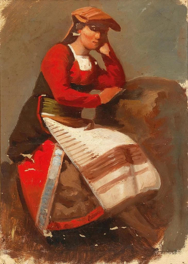 Vincenzo Cabianca, italienischer maler des 19. Jahrhunderts, wird oft mit der realistischen Bewegung in Verbindung gebracht. Geboren 1827 in Verona, wurde er von den großen Meistern der italienischen Malerei und den künstlerischen Strömungen seiner Zeit beeinflusst. Cabianca konnte das Alltagsleben mit einer einzigartigen Sensibilität erfassen, wobei er ländliche Szenen und bescheidene Figuren in den Vordergrund stellte. Sein Werk, obwohl weniger bekannt als das einiger Zeitgenossen, ist wesentlich, um die Entwicklung der realistischen Malerei in Italien zu verstehen. Durch seine Gemälde schildert er eine Epoche, in der Natur und die Arbeit auf dem Feld eine zentrale Rolle im Leben der Menschen spielten.