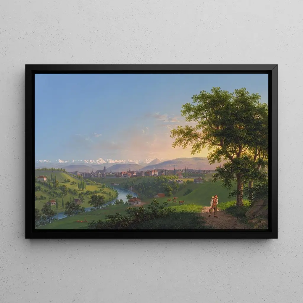 Berne: eine romantische Sicht auf die Schweizer Landschaften Die Kunstdrucke von Bern, geschaffen von Johann Heinrich Bleuler dem Jüngeren, entführen uns in das Herz einer idyllischen Landschaft. Mit ihren sanften Farbtönen und den Grüntönen gelingt es dem Künstler, die Gelassenheit der Ufer der Aare einzufangen. Die detaillierten Darstellungen der historischen Gebäude, verbunden mit der Majestät der Berge im Hintergrund, schaffen eine beruhigende und kontemplative Atmosphäre. Die Ölmaltechnik ermöglicht es Bleuler, mit dem Licht zu spielen, die Reflexionen auf dem Wasser zu betonen und diese idyllische Szene zum Leben zu erwecken. Jeder Pinselstrich scheint eine Geschichte zu erzählen und lädt den Betrachter ein, in dieses Gemälde einzutauchen. Johann Heinrich Bleuler der Jüngere: ein Meister der romantischen Landschaft Johann Heinrich Bleuler der Jüngere, aktiv im 19. Jahrhundert, ist bekannt für seine Landschaften, die die natürliche Schönheit der Schweiz feiern. Beeinflusst von der romantischen Bewegung, folgt er einer künstlerischen Tradition, die Emotionen und persönliche Ausdruckskraft wertschätzt. Seine Werke spiegeln eine tiefe Verbindung zur Natur wider, oft geprägt von einer Atmosphäre der Melancholie und Kontemplation. Bleuler hat die Essenz der Orte, die er malte, eingefangen und sich so zu einem unverzichtbaren Künstler seiner Zeit entwickelt. Sein Erbe besteht fort, und seine Kunstdrucke inspirieren weiterhin jene, die ihre Wohnräume mit Szenen voller Poesie verschönern möchten. Eine dekorative Anschaffung mit vielfältigen Vorzügen Der Kunstdruck von Bern ist ein dekoratives Stück, das sich harmonisch in verschiedene Räume einfügt, sei es im Wohnzimmer, im Büro oder im Schlafzimmer. Seine Druckqualität garantiert eine bemerkenswerte Farbtreue und Detailgenauigkeit des Originalwerks, sodass man die Ästhetik von Bleuler im Alltag genießen kann. Dieses Bild, mit seiner ruhigen Atmosphäre, bringt eine Note von Ruhe und Raffinesse in Ihr Zuhause. Mit der Wahl dieses Leinwandbildes entscheiden Sie sich für ein Werk, das nicht nur Ihre Dekoration verschönert, sondern auch zum Nachdenken und zur Flucht einlädt, sodass jeder Blick zu einem Moment der Kontemplation wird.