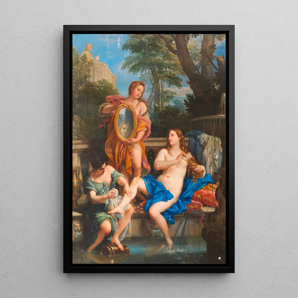 Bethsabée im Bade: eine Szene voller Schönheit und Geheimnis Das Gemälde "Bethsabée im Bade" von Carlo Maratti ist ein faszinierendes Werk, das eine Szene voller Sinnlichkeit und Geheimnis darstellt. Die Komposition hebt die Figur der Bethsabée hervor, die in einem sanften Licht badet, das die Zartheit ihrer Silhouette betont. Die warmen und reichen Farben, typisch für den Barock, schaffen eine Atmosphäre, die sowohl intim als auch dramatisch ist. Maratti überzeugt durch die Darstellung der Texturen, sei es im funkelnden Wasser oder in den prächtigen Drapierungen, die die Protagonistin umgeben. Dieses Werk lädt den Betrachter ein, in eine alte Geschichte einzutauchen, in der Schönheit und Tragödie aufeinandertreffen. Carlo Maratti: die Ikone des italienischen Barock Carlo Maratti, geboren 1625, gilt als einer der großen Meister des italienischen Barock. Seine Karriere erstreckte sich über mehrere Jahrzehnte, in denen er die Essenz seiner Zeit durch seine Werke einfing. Beeinflusst von großen Meistern wie Raffael und Caravaggio, entwickelte er einen einzigartigen Stil, der die Klarheit der Formen mit emotionaler Ausdruckskraft verbindet. Maratti war auch ein einflussreicher Lehrer, der zahlreiche Künstler formte, die sein Erbe weiterführen. "Bethsabée im Bade" ist ein perfektes Beispiel für seine Fähigkeit, Erzählung und Ästhetik zu verbinden, was ihn zu einer unentbehrlichen Figur in der Kunstgeschichte macht. Eine dekorative Anschaffung mit vielfältigen Vorzügen Der kunstdruck von "Bethsabée im Bade" ist ein Kunstwerk, das jedem Raum eine elegante Note verleiht. Ob im Wohnzimmer, Schlafzimmer oder Büro, dieses Bild zieht den Blick auf sich und weckt Bewunderung. Seine hochwertige Druckqualität garantiert, dass jedes Detail des Originalwerks erhalten bleibt, was ein bereicherndes visuelles Erlebnis bietet. Durch die Integration dieses Kunstwerks in Ihre Dekoration schaffen Sie einen Raum, in dem Kunst und Schönheit aufeinandertreffen, und fügen Ihrer Umgebung eine erzählerische Dimension hinzu. Es ist eine Anschaffung, die Kunstliebhaber und Ästhetikfreunde gleichermaßen begeistern wird.