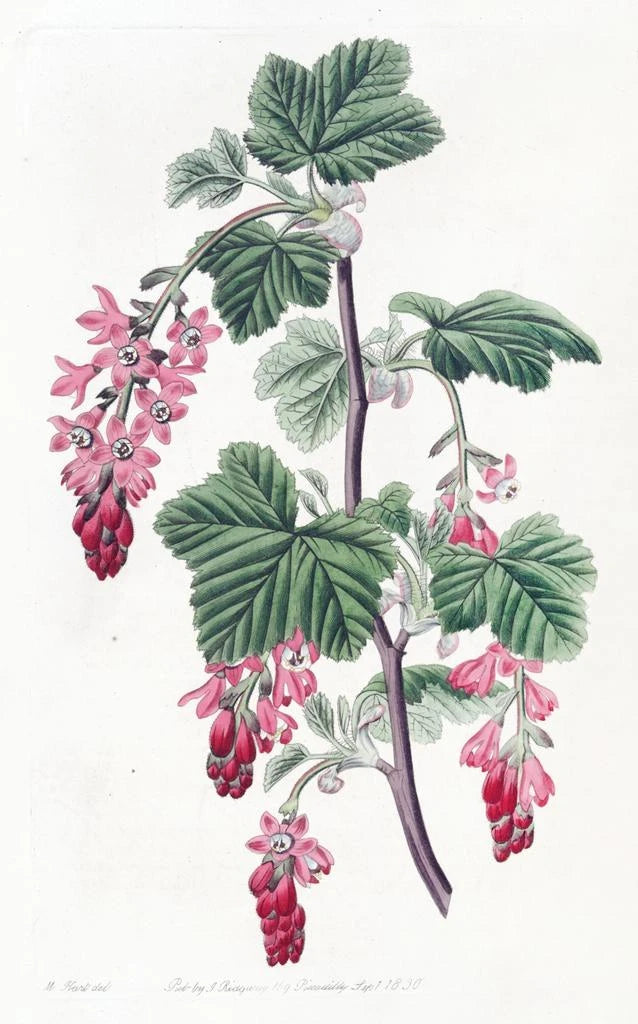Gemälde Groseillier à fleurs pourpres – Sydenham Edwards