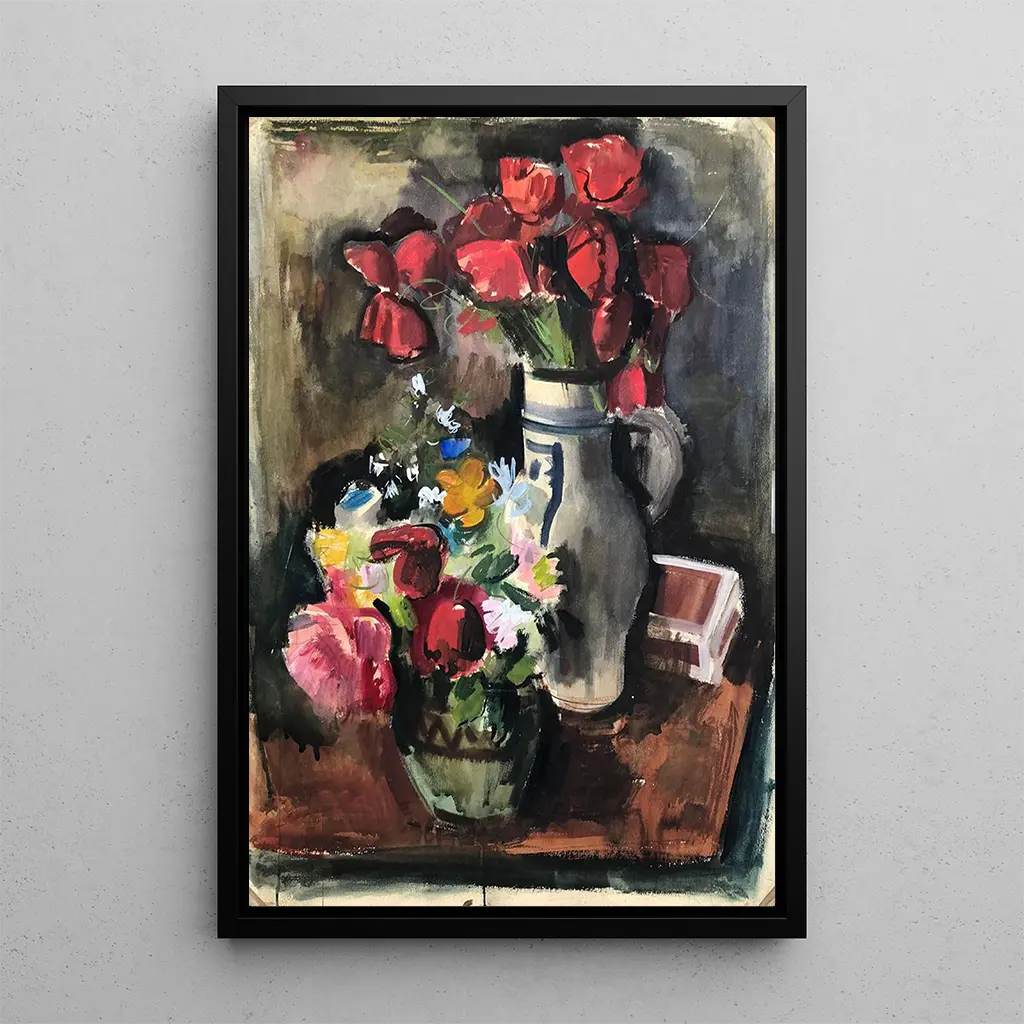 Blumenstrauß auf dem Tisch: eine Feier der Natur im Innenraum. Das Gemälde "Blumenstrauß auf dem Tisch" entführt uns in einen Moment der Gelassenheit und natürlichen Schönheit. Die Blumenkomposition, reich an Farben und Texturen, evoziert eine perfekte Harmonie zwischen den verschiedenen Blumenarten. Die lebendigen Töne, die von tiefroten bis zu leuchtend gelben reichen, schaffen eine fröhliche und lebendige Atmosphäre. Otto Geigenberger verwendet eine Ölmaltechnik, die es ermöglicht, Licht und Schatten einzufangen und jedem Blütenblatt und Blatt Leben einzuhauchen. Dieses Werk lädt dazu ein, die vergängliche Schönheit der Natur zu schätzen und bringt gleichzeitig eine Prise Frische in unseren Alltag. Otto Geigenberger: ein Künstler im Herzen des Impressionismus. Otto Geigenberger, aktiv um die Jahrhundertwende, wird oft mit der impressionistischen Bewegung in Verbindung gebracht, die die Erfassung von Licht und Farben bevorzugt. Beeinflusst von Meistern wie Monet und Renoir, konzentriert er sich auf die Darstellung der Natur und alltäglicher Szenen. Seine Werke, obwohl weniger bekannt, zeugen von einer besonderen Sensibilität für die Schönheit einfacher Dinge. Durch die Integration von Elementen der Natur in seine Kompositionen gelingt es Geigenberger, beruhigende und evocative Atmosphären zu schaffen und so seinen Eindruck in der Kunstgeschichte zu hinterlassen. Eine dekorative Anschaffung mit vielfältigen Vorteilen. Der kunstdruck des "Blumenstrauß auf dem Tisch" ist ein ideales Dekorationsstück, um Ihr Interieur zu verschönern, sei es im Wohnzimmer, Esszimmer oder Büro. Seine Druckqualität garantiert eine außergewöhnliche Farbtreue und Detailgenauigkeit des Originalwerks und bringt eine Note Natur in Ihren Raum. Dieses Gemälde, mit seinem unbestreitbaren ästhetischen Reiz, passt perfekt in verschiedene Einrichtungsstile, vom klassischen bis zum modernen. Mit dieser Leinwand verleihen Sie Ihrer Umgebung eine Frische- und Vitalitätsnote und feiern gleichzeitig die Schönheit der Blumen.