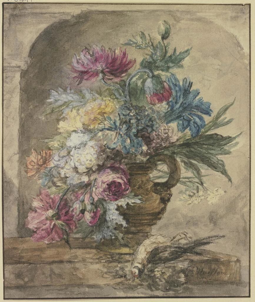 Blumenstrauß mit einer toten Vogel - Jan van Huysum
