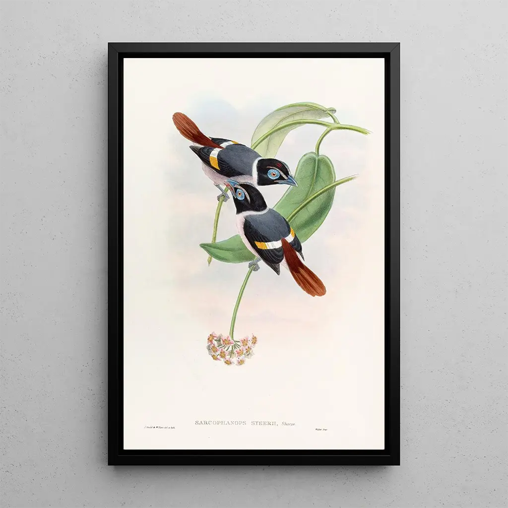 Der kunstdruck des "Broadbill de Steere" ist ein dekoratives Stück, das sich perfekt in verschiedene Räume integrieren lässt, sei es im Wohnzimmer, Büro oder Schlafzimmer. Seine Druckqualität und die Treue zu den Originalfarben machen ihn zur idealen Wahl für Kunst- und Naturliebhaber. Durch das Hinzufügen dieses Leinwandbildes zu Ihrer Dekoration verleihen Sie Ihrem Raum eine elegante und ruhige Atmosphäre und feiern gleichzeitig die Schönheit der Tierwelt. Dieses Gemälde, mit seinem unbestreitbaren ästhetischen Reiz, wird die Blicke auf sich ziehen und Gespräche über die Vielfalt unserer natürlichen Umwelt anregen.