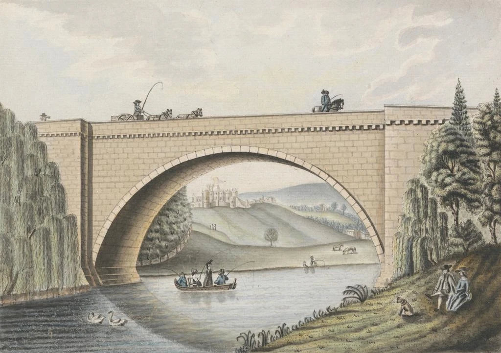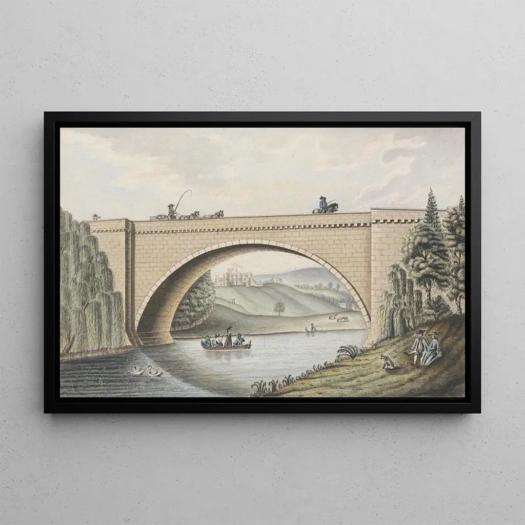 Das Gemälde "Pont en brique" von William Beilby entführt uns in eine idyllische Landschaft, in der Natur und Architektur mit Anmut aufeinandertreffen. Die Komposition wird von einer majestätischen Brücke dominiert, die aus Ziegeln gebaut ist und über einen ruhigen Fluss emporragt. Die warmen, erdigen Farben, kombiniert mit Akzenten von üppigem Grün, schaffen eine ruhige und einladende Atmosphäre. Die Technik von Beilby, gekennzeichnet durch detaillierte Feinheiten und weiches Licht, verleiht dem Werk eine Tiefe, die zur Kontemplation einlädt. Dieses Gemälde ist eine wahre Ode an die Schönheit englischer Landschaften, in denen jedes Element in perfekter Harmonie zu leben scheint.