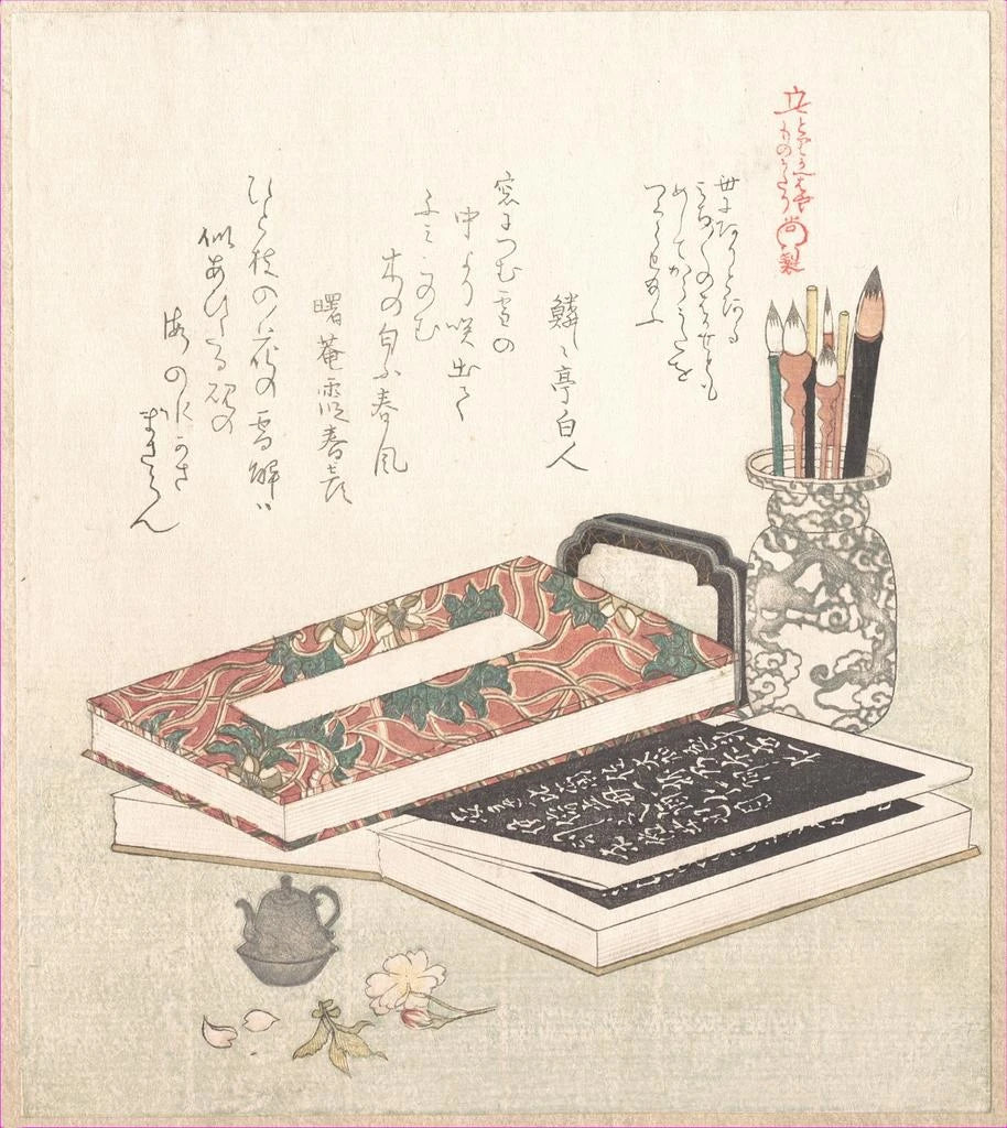 Bücher und Pinselhalter - Kubo Shunman Source: Livres et porte-pinceaux - Kubo Shunman