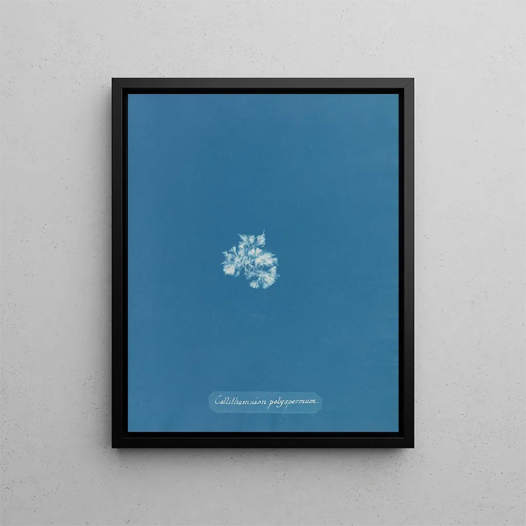 In einer Welt, in der Natur und Kunst auf bisher unbekannte Weise aufeinandertreffen, zeichnet sich das Werk "Callithamnion polyspermum" von Anna Atkins durch seine zarte Schönheit und wissenschaftliche Präzision aus. Dieses ikonische Stück, das zu den ersten botanischen Fotografien gehört, entführt uns in ein Universum, in dem Wissenschaft und Ästhetik miteinander verschmelzen. Durch diese Darstellung von Algen fängt Atkins nicht nur ein einfaches Bild ein; sie verewigt die Zerbrechlichkeit und Komplexität des Meereslebens. Beim Betrachten dieses Werks wird der Zuschauer eingeladen, die Tiefen einer oft unbekannten Welt zu erkunden, in der jedes Detail eine Geschichte erzählt.