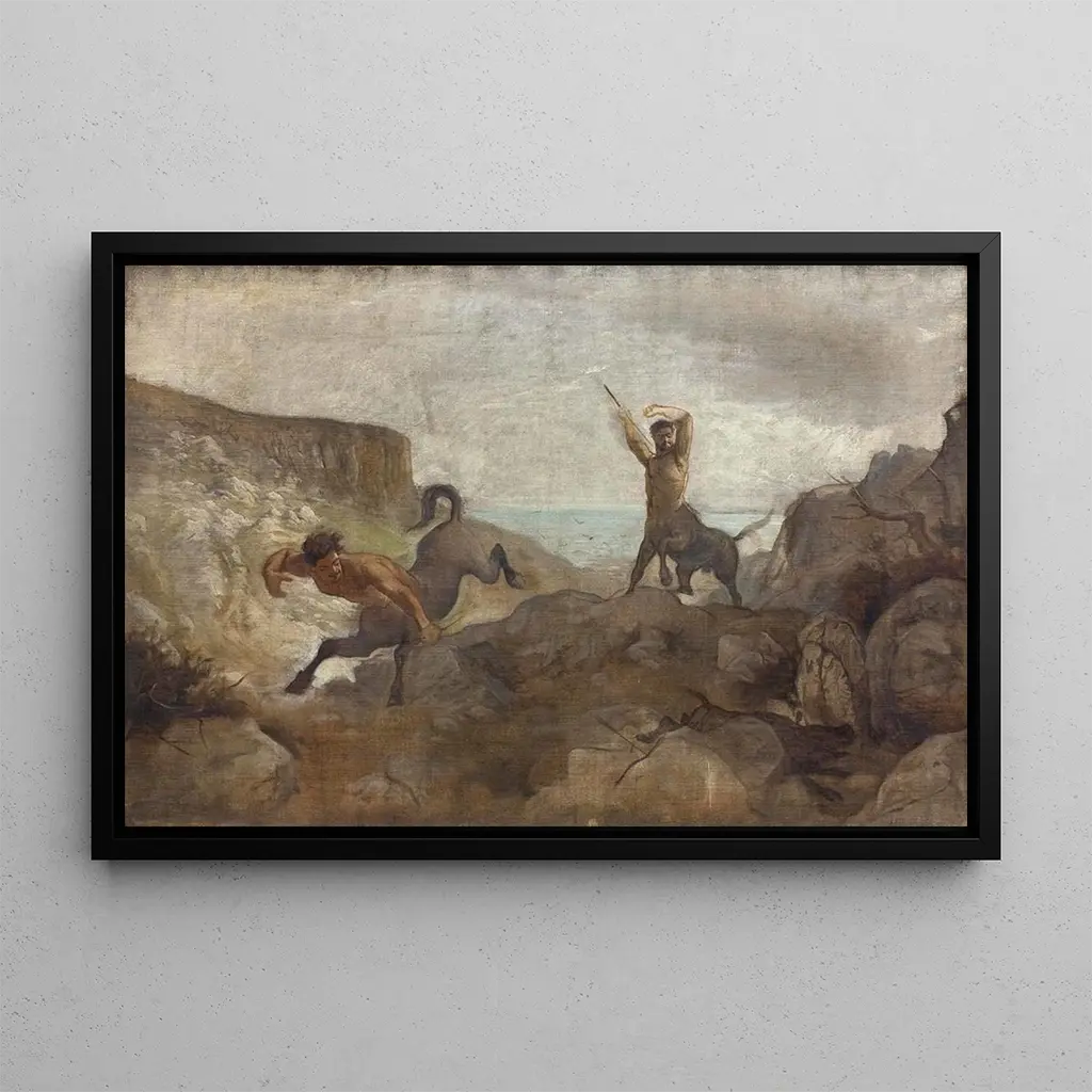 In diesem fesselnden Werk entführt uns der Centaure, der Wildschweine jagt, Ludvig Abelin Schou in eine mythologische Welt, in der Natur und Menschlichkeit aufeinandertreffen. Die dynamische Komposition des Gemäldes, mit seinen fließenden Linien und lebendigen Farben, erinnert an eine rasante Jagdszene. Die erdigen Töne und Lichtreflexe schaffen eine Atmosphäre, die zugleich wild und majestätisch ist, während der Centaure, eine ikonische Figur der griechischen Mythologie, rohe Kraft und Harmonie mit der Natur verkörpert. Schous Technik, die Realismus und Romantik verbindet, erweckt diese Szene zum Leben und lädt den Betrachter ein, die Intensität der Aktion zu spüren.