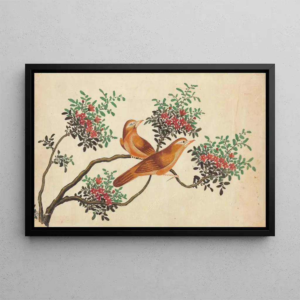 Oiseaux de Chine : ein farbenfroher Ballett aus Federn und Anmut Der kunstdruck Oiseaux de Chine erinnert an eine verzauberte Welt, in der die Natur in einem Tanz aus leuchtenden Farben und zarten Formen erblüht. Die Vögel, mit akribischer Präzision dargestellt, scheinen auf der Leinwand zum Leben zu erwachen, ihre schillernden Gefieder erleuchten die Szenerie. Die Nuancen von Blau, Grün und Rot vermischen sich harmonisch und schaffen eine Atmosphäre, die sowohl ruhig als auch lebendig ist. Die verwendete Technik, wahrscheinlich Tinte auf Seide, verleiht dem Werk eine Leichtigkeit und Fließfähigkeit, die den Betrachter fesseln. Jedes Detail, vom üppigen Laub bis zu den anmutigen Vögeln, lädt zu einer längeren Betrachtung ein und offenbart die vergängliche Schönheit der Natur. Anonym : ein Zeugnis der traditionellen asiatischen Kunst Der Künstler des kunstdrucks Oiseaux de Chine bleibt anonym, doch sein Werk zeugt von einer reichen asiatischen Kunsttradition, die besonders während der Ming- und Qing-Dynastien blühte. Diese Perioden brachten einen einzigartigen Stil hervor, in dem Natur und Tiere oft für ihr Symbolgehalt und ihre Schönheit gefeiert werden. Der Einfluss taoistischer Philosophie und des Buddhismus spiegelt sich darin wider, wie die Künstler dieser Epoche versuchten, die Harmonie zwischen Mensch und Natur einzufangen. Obwohl die Identität des Künstlers unbekannt bleibt, inspiriert und begeistert sein Werk weiterhin und unterstreicht die Bedeutung der Natur in der asiatischen Kultur. Eine dekorative Anschaffung mit vielfältigen Vorzügen Der kunstdruck Oiseaux de Chine ist ein ideales Dekorationsstück für verschiedene Wohnräume, sei es ein Wohnzimmer, ein Büro oder ein Schlafzimmer. Seine ästhetische Anziehungskraft und die Qualität der Reproduktion machen ihn zur perfekten Wahl, um Ihrem Interieur einen Hauch von Eleganz und Ruhe zu verleihen. Das Leinwandbild, treu zum Original, ermöglicht es, die Schönheit dieses Werks zu genießen, ohne die Authentizität Ihrer Dekoration zu beeinträchtigen. Durch die Integration dieses Kunstdrucks in Ihren Raum schaffen Sie eine beruhigende Atmosphäre, die zur Kontemplation und Flucht einlädt, und feiern gleichzeitig das künstlerische Erbe Asiens.