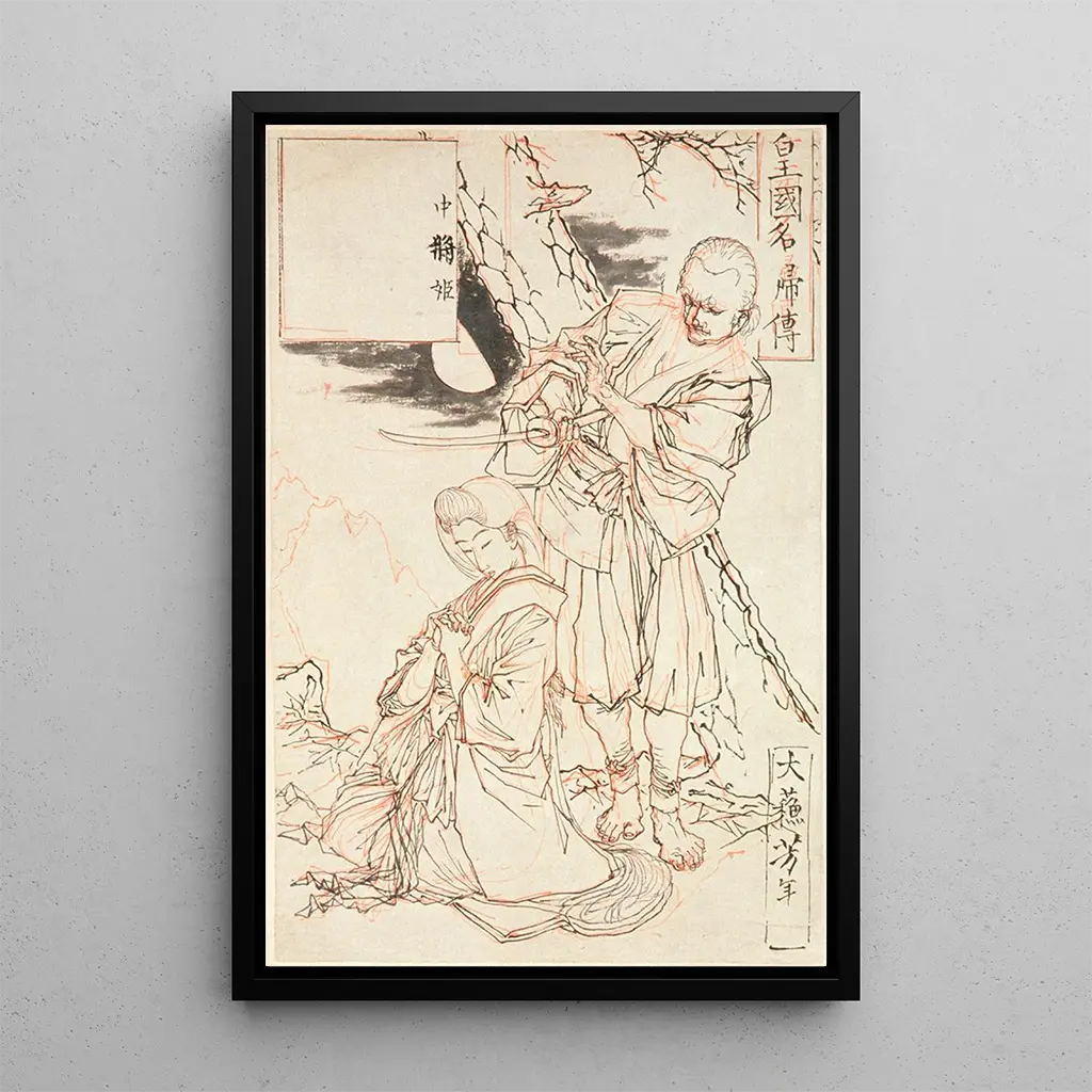 Tsukioka Yoshitoshi, geboren 1839, gilt als einer der letzten großen Meister des Ukiyo-e. Sein Werk, geprägt von vielfältigen Einflüssen, zeugt von einer Übergangszeit in der japanischen Kunst, zwischen Tradition und Moderne. Yoshitoshi hat es verstanden, zeitgenössische Elemente zu integrieren, während er die alten Techniken respektierte, was ihm ermöglichte, sich von seinen Vorgängern abzuheben. Seine Fähigkeit, Geschichten durch seine Kunstdrucke zu erzählen, machte ihn zu einem unverzichtbaren Künstler, dessen Einfluss noch heute spürbar ist. „Chjhime“ ist ein perfektes Beispiel für sein Talent, tiefe Emotionen durch visuell beeindruckende Bilder zu vermitteln.
