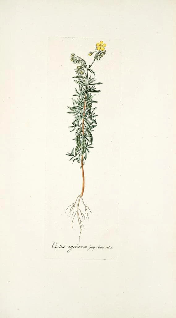 Nikolaus Joseph Freiherr von Jacquin, aktiv im 18. Jahrhundert, ist bekannt für seinen Beitrag zur Botanik und zur floralen Kunst. Seine Ausbildung an der Universität Wien und seine Reisen durch Europa haben sein Verständnis für Pflanzen bereichert. Beeinflusst von den wissenschaftlichen Entdeckungen seiner Zeit, konnte Jacquin Präzision und Ästhetik in seinen Werken vereinen, wie zum Beispiel bei Cistus syriacus. Seine Illustrationen dokumentierten nicht nur die Flora, sondern inspirierten auch ein wachsendes Interesse an der künstlerischen Botanik, was ihn zu einer bedeutenden Figur dieser Epoche machte.