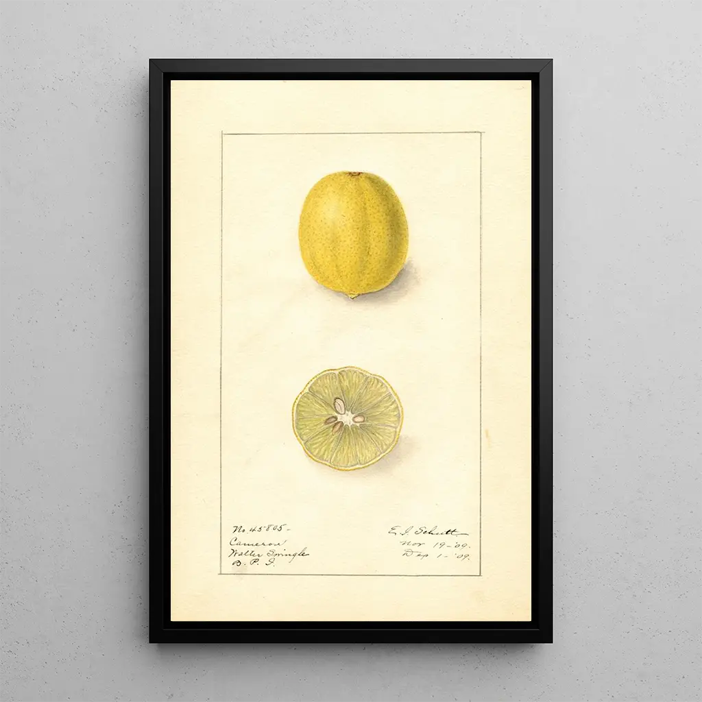 Die kunstdrucke von Citrus aurantiifolia, signiert von Ellen Isham Schutt, sind eine wahre Feier der Zitrusfrüchte. Die lebendigen Gelb- und Grüntöne verschmelzen zu einer dynamischen Komposition, die Frische und Vitalität evoziert. Die Künstlerin verwendet eine Aquarelltechnik, die es ermöglicht, Licht und Textur der Früchte mit großer Feinheit wiederzugeben. Dieses lebendige Werk entführt den Betrachter in einen sonnigen Obstgarten, in dem die Aromen der Zitronen mit der visuellen Schönheit der leuchtenden Farben verschmelzen.