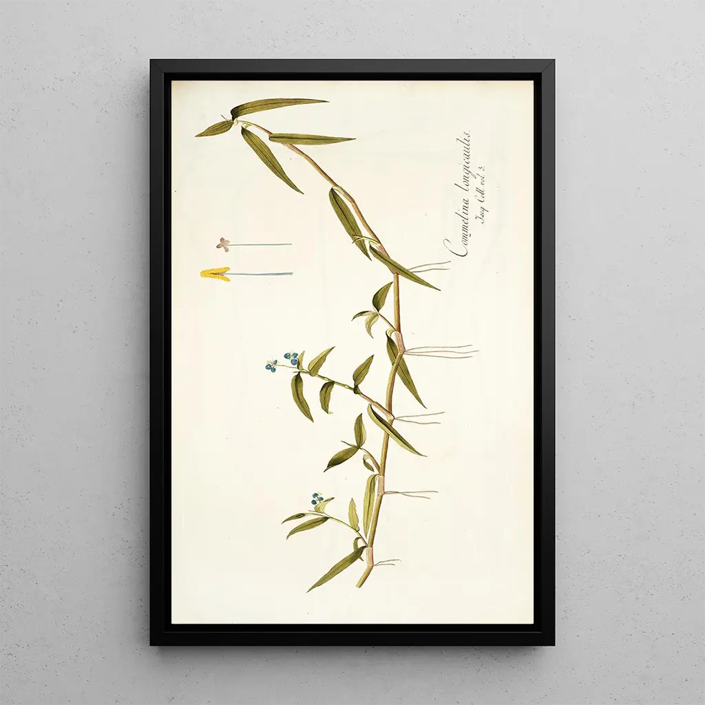 Der kunstdruck von Commelina longicaulis ist eine lebendige Feier der tropischen Flora. Die leuchtenden Blau- und Grüntöne verschmelzen harmonisch und schaffen eine dynamische Komposition, die den Blick fesselt. Die Blumen, zart dargestellt, scheinen fast greifbar und wecken die Frische eines sonnigen Morgens. Die Technik des Künstlers, die Präzision und Sensibilität vereint, erweckt diese mehrjährige Pflanze zum Leben und verwandelt eine einfache botanische Illustration in ein faszinierendes Kunstwerk.