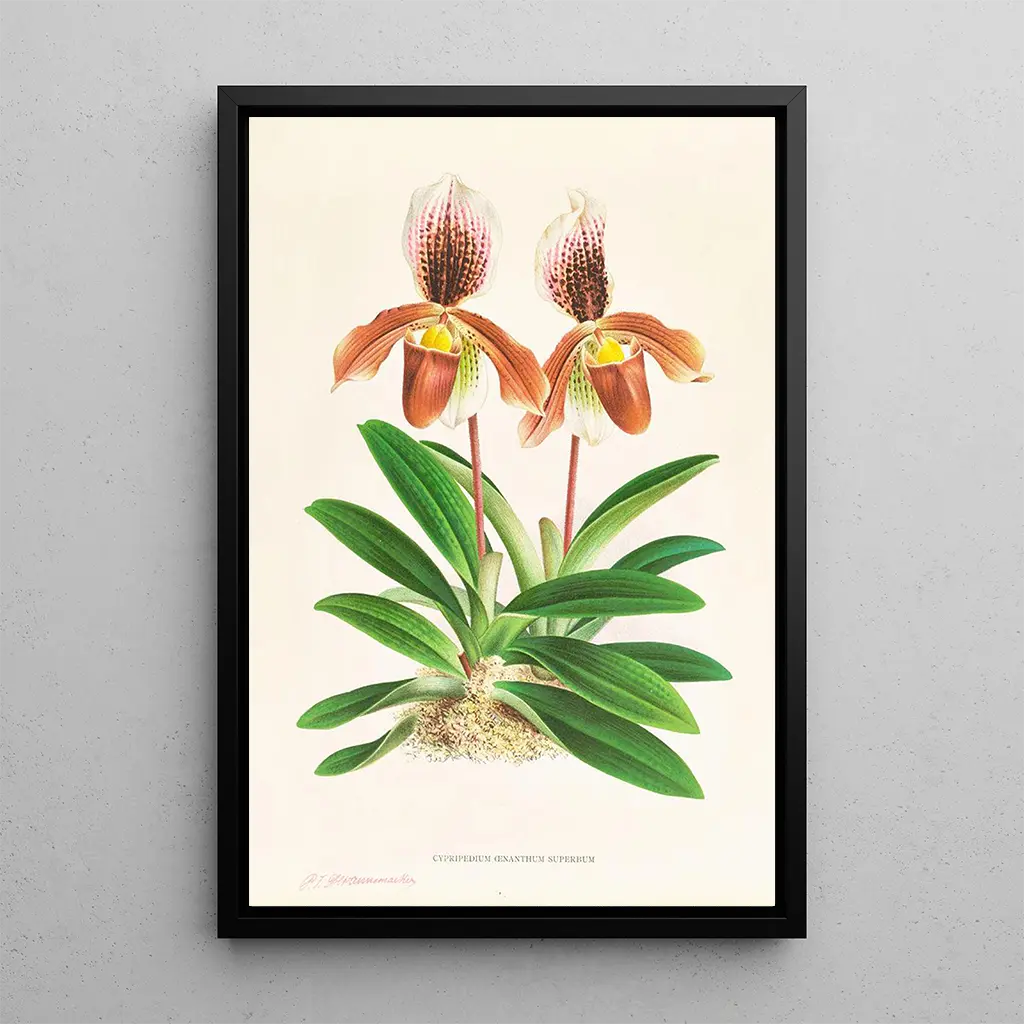 Die kunstdrucke von Cypripedium oenanthum superbum entführen uns in einen üppigen Garten, in dem die lebendigen Farben der Orchideen unter einem hellen Himmel erblühen. Jean Jules Linden, mit seinem unvergleichlichen Talent, gelingt es, die Pracht dieser seltenen Blume einzufangen. Die Gelb- und Rottöne verschmelzen miteinander und rufen die Wärme der Sonne und die Fülle der Erde hervor. Die filigrane Aquarelltechnik verleiht diesem Werk Leichtigkeit und Fließfähigkeit, als ob die Blumen bereit wären, im Wind davonzufliegen.
