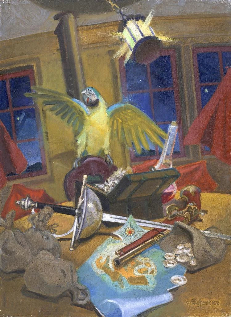 „Der Beute der Boucaniers“ ist ein Werk, das den Betrachter in die turbulente Welt der Piraten eintauchen lässt. James C. Kulhanek, mit seiner Fähigkeit, Bewegung und Aktion einzufangen, versetzt uns auf die unruhigen Gewässer, wo das Licht auf den Wellen und den Gesichtern der Figuren spielt. Die Farbpalette, die zwischen dunklen Tönen und leuchtenden Akzenten schwankt, verstärkt das Drama der Szene. Jedes Detail, von den Segeln bis zu den Gesichtsausdrücken der Boucaniers, ist sorgfältig wiedergegeben und schafft eine Atmosphäre, die sowohl spannend als auch immersiv ist, als ob man Zeuge einer wahren Epoche wird.