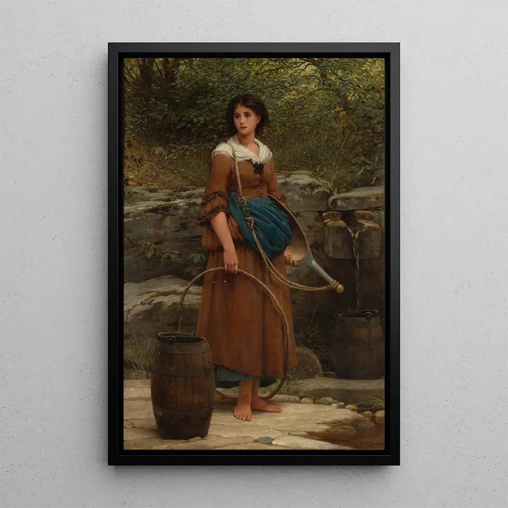 La Jeune Fille Brune : eine Hommage an die zeitlose Schönheit Die Brünette junge Frau von George Dunlop Leslie ist ein Kunstwerk, das die Essenz von Jugend und Anmut einfängt. In diesem Gemälde streichelt das sanfte Licht das Gesicht der jungen Frau und enthüllt Nuancen von Braun und Gold, die eine warme und intime Atmosphäre hervorrufen. Die zarten Details ihres Kleides und die Reflexionen ihres Haares schaffen eine visuelle Harmonie, während der verschwommene Hintergrund einen üppigen Garten andeutet, ein Symbol für Natur und Leben. Diese Komposition lädt zur Betrachtung ein und ermöglicht es dem Betrachter, in das zarte Universum der Protagonistin einzutauchen. George Dunlop Leslie : ein Meister des Präraffaelismus George Dunlop Leslie, aktiv im späten 19. Jahrhundert, ist ein britischer Maler, der vom präraffaelitischen Bewegung beeinflusst wurde, die eine Rückkehr zur Natur und zur Schönheit der Details forderte. Ausgebildet an der Royal Academy, gelang es ihm, Szenen des Alltagslebens mit einer einzigartigen Sensibilität einzufangen. Seine Werke, oft bevölkert von weiblichen Figuren, spiegeln eine Faszination für Schönheit und Einfachheit wider. Die Brünette junge Frau passt in diese Tradition, verbindet Romantik und Realismus, um eine poetische Atmosphäre zu schaffen. Seine Arbeit hat seine Zeit geprägt und inspiriert weiterhin Kunstliebhaber. Eine dekorative Anschaffung mit vielfältigen Vorteilen Die Wahl eines Kunstdrucks der Brünette jungen Frau ist eine Entscheidung für eine Leinwand, die Ihr Interieur verschönert, sei es im Wohnzimmer, Büro oder Schlafzimmer. Die Qualität des Kunstdrucks garantiert lebendige Farben und präzise Details, was eine bemerkenswerte Treue zum Originalwerk bietet. Dieses Bild verleiht Ihrer Dekoration einen Hauch von Eleganz und Ruhe und weckt die Bewunderung Ihrer Gäste. Mit seinem unbestreitbaren ästhetischen Reiz wird dieses Werk zu einem wahren Blickfang und bereichert Ihren Lebensraum mit zeitloser Schönheit.