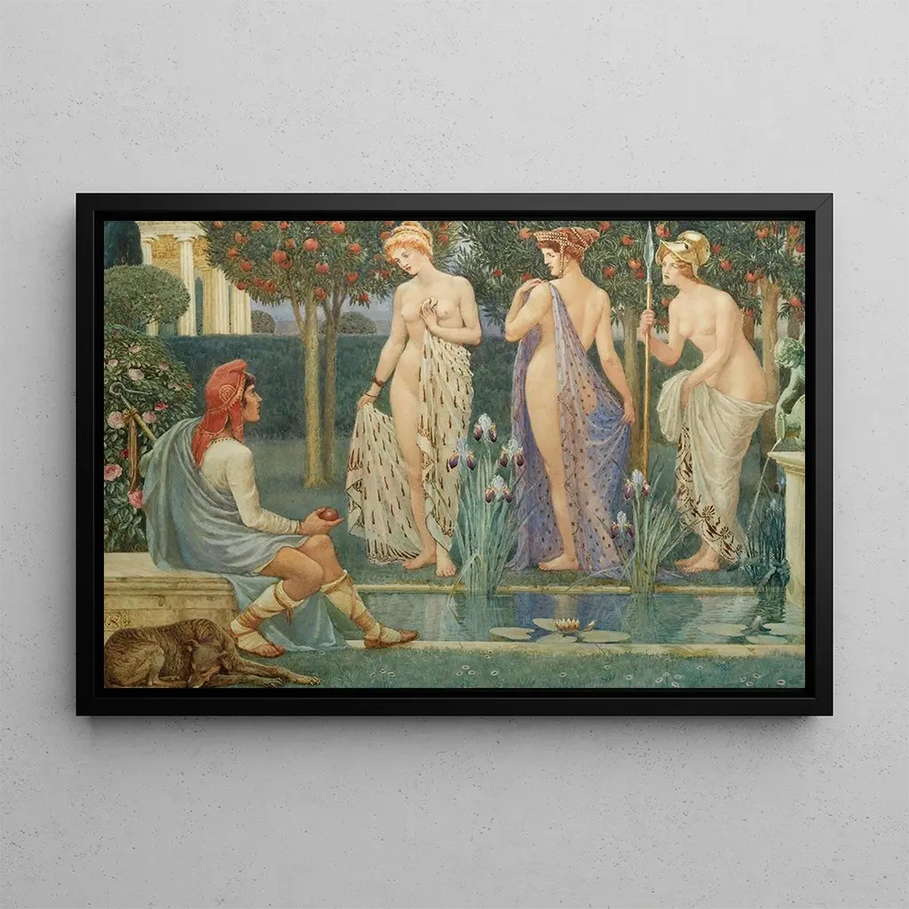 Le Jugement de Pâris : eine lebendige mythologische Szene voller Farben In "Le Jugement de Pâris" taucht Walter Crane uns in eine mythologische Szene voller Details und Farben ein. Dieses fesselnde Werk stellt den Moment dar, in dem Pâris, der Prinz von Troja, die schönste Göttin zwischen Hera, Athene und Aphrodite wählen muss. Die schillernden Farbtöne, die von strahlendem Gold bis zu tiefem Blau reichen, schaffen eine Atmosphäre, die sowohl festlich als auch dramatisch ist. Die dynamische Komposition, mit elegant angeordneten Figuren, zieht den Blick auf sich und lädt dazu ein, jedes Element der Leinwand zu erkunden. Der Künstler gelingt es, die Intensität dieses entscheidenden Moments einzufangen, in dem Schönheit und Eitelkeit miteinander verschmelzen. Walter Crane : ein Meister der Arts & Crafts Bewegung Walter Crane, eine ikonische Figur der Arts & Crafts Bewegung, prägte das Ende des 19. Jahrhunderts mit seinem innovativen Ansatz in Kunst und Illustration. Geboren 1845, wurde er von den Präraffaeliten und dem japanischen Stil beeinflusst, was sich in seinen Werken widerspiegelt. Crane widmete seine Karriere der Erstellung von Illustrationen für Bücher, aber auch Wandmalereien und Dekorationsarbeiten. Sein Engagement für Ästhetik und Handwerkskunst trug dazu bei, die künstlerischen Standards seiner Zeit neu zu definieren, und machte ihn zu einem Pionier bei der Integration von Kunst in den Alltag. Eine dekorative Ergänzung mit vielfältigen Vorzügen Der kunstdruck von "Le Jugement de Pâris" ist ein ideales Dekorationsstück, um Ihr Interieur zu bereichern, sei es im Wohnzimmer, Büro oder Schlafzimmer. Seine Druckqualität und die Treue zu den Originaldetails machen dieses Kunstwerk zu einer attraktiven Wahl für Kunstliebhaber. Durch das Hinzufügen dieses Werks zu Ihrer Dekoration bringen Sie einen Hauch von Eleganz und Kultur in Ihr Zuhause, während Sie Gespräche über Mythologie und Kunst anregen. Dieser kunstdruck ist nicht nur ein ästhetisches Element, sondern auch eine Einladung, über die universellen Themen Schönheit und Wahl nachzudenken.