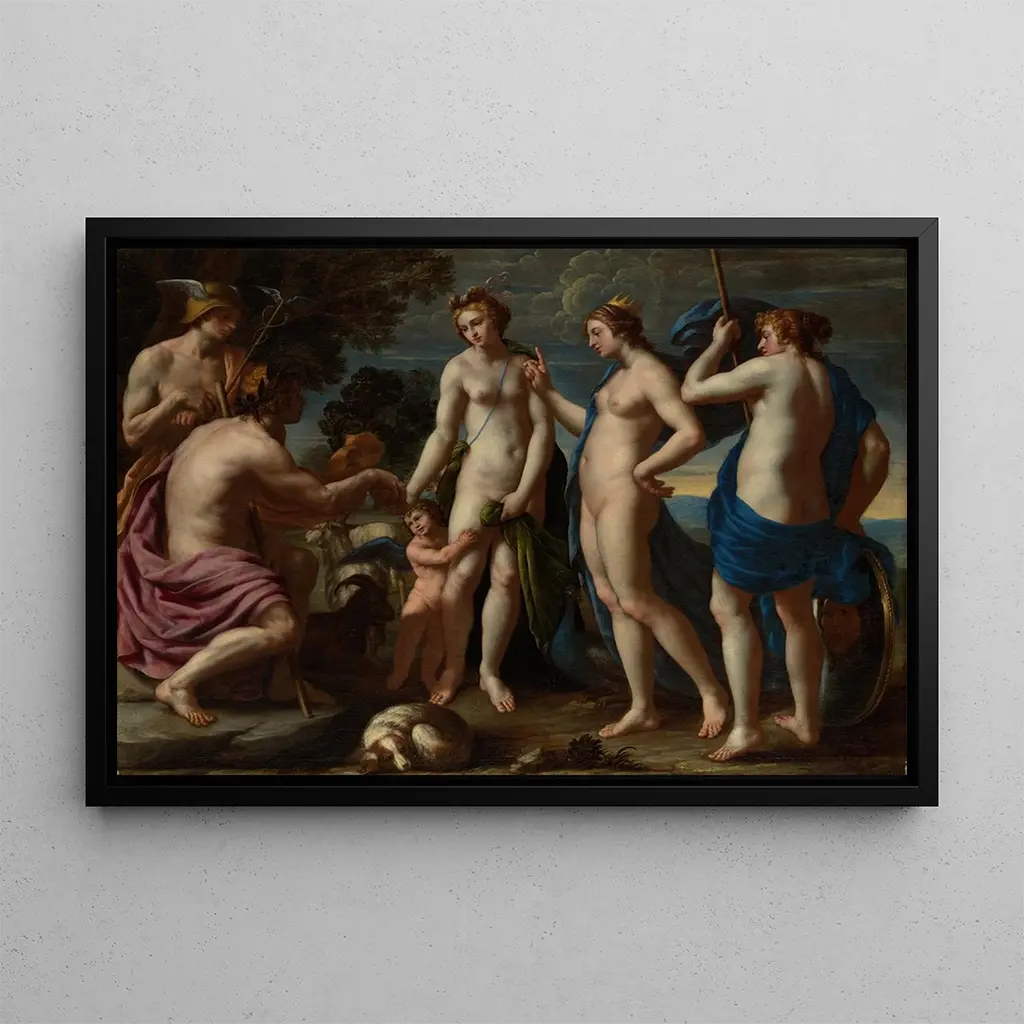 Der Kunstdruck "Der Urteilsspruch des Paris" von Alessandro Turchi entführt uns in eine reichhaltige mythologische Welt voller Farben und Emotionen. Dieses fesselnde Werk stellt den entscheidenden Moment dar, in dem Paris, der Prinz von Troja, die schönste Göttin zwischen Hera, Athene und Aphrodite wählen muss. Die goldenen Töne und Blaunuancen schaffen eine Atmosphäre, die sowohl göttlich als auch dramatisch wirkt, während die dynamische Komposition den Blick auf die Mitte der Szene lenkt. Turchi, mit seiner technischen Meisterschaft, gelingt es, die Intensität des Moments einzufangen und jede Figur lebendig und ausdrucksstark darzustellen. Das Licht spielt eine zentrale Rolle, hebt die Details der Drapierungen und Gesichter hervor und lädt den Betrachter ein, in diese mythologische Geschichte einzutauchen. Alessandro Turchi: ein Meister des italienischen Barock Alessandro Turchi, aktiv im 17. Jahrhundert, ist ein Barockmaler, dessen Werk oft mit visueller Opulenz und Emotion verbunden wird. Ausgebildet im Schatten großer Meister seiner Zeit, konnte Turchi Einflüsse der venezianischen Malerei integrieren und gleichzeitig seinen eigenen, unverwechselbaren Stil entwickeln. Sein Werk zeichnet sich durch eine mutige Farbgestaltung und eine sorgfältige Detailarbeit aus, typische Merkmale des Barock. "Der Urteilsspruch des Paris" veranschaulicht perfekt sein Talent, indem es Mythologie und Humanismus verbindet und die Bedeutung der visuellen Erzählkunst in der Kunst seiner Epoche unterstreicht. Turchi hinterließ ein nachhaltiges Erbe und beeinflusste zahlreiche nachfolgende Künstler. Eine dekorative Anschaffung mit vielfältigen Vorzügen Der Kunstdruck des Gemäldes "Der Urteilsspruch des Paris" ist ein dekoratives Stück, das jeden Raum bereichern kann, sei es ein Wohnzimmer, ein Büro oder ein Schlafzimmer. Die Qualität des Reprodukts garantiert eine bemerkenswerte Treue zu den Details und Farben des Originalwerks, sodass die Kraft der Kunst Turchis spürbar wird. Mit seinem unbestreitbaren ästhetischen Reiz wird diese Leinwand zu einem faszinierenden Blickfang, der Bewunderung und Neugier bei den Besuchern weckt. Durch die Integration dieses Kunstwerks in Ihre Dekoration verleihen Sie Ihrem Zuhause einen Hauch von Kultur und Eleganz und feiern gleichzeitig das künstlerische Erbe des italienischen Barock.