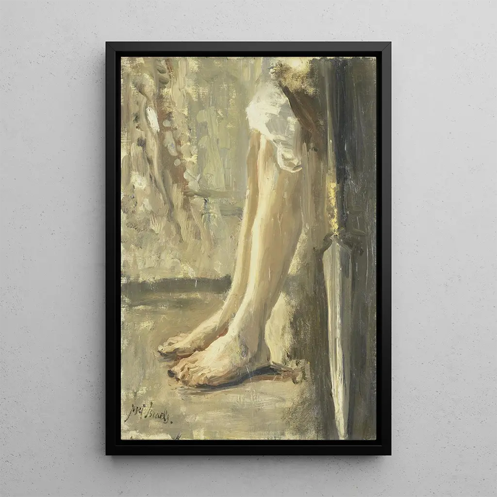 In "Jambes de David" fängt Jozef Israëls die Kraft und Entschlossenheit eines jungen Mannes beim Aufstieg ein. Die dynamische Komposition, bei der die muskulösen Beine des Helden hervorgehoben werden, vermittelt ein Gefühl von Bewegung und Energie. Die warmen, erdigen Farben, typisch für den Künstler, verstärken die emotionale Wirkung des Kunstwerks. Das Licht spielt eine entscheidende Rolle, indem es die Details des Körpers beleuchtet und gleichzeitig eine Atmosphäre schafft, die sowohl heroisch als auch intim ist. Dieses Kunstwerk lädt den Betrachter ein, nicht nur die körperliche Stärke, sondern auch die Widerstandskraft des menschlichen Geistes zu bewundern.