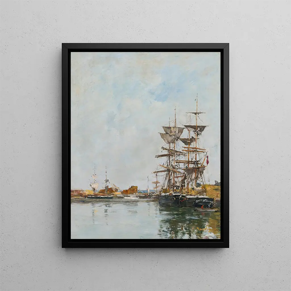 Reproduktion Deauville Le Bassin - Eugène Boudin – Einführung fesselnd In der faszinierenden Welt der impressionistischen Malerei steht "Deauville Le Bassin" von Eugène Boudin als lebendiges Zeugnis der vergänglichen Schönheit der normannischen Küste. Dieses Werk fängt die Essenz eines sonnigen Tages am Meer ein und lädt den Betrachter ein, in eine Atmosphäre der Ruhe und Gelassenheit einzutauchen. Die zarten Nuancen von Blau und Grün, kombiniert mit leichten Weißtönen, erinnern an die Bewegung der Wellen und die Sanftheit einer Meeresbrise. Beim Betrachten dieser Szene spürt man fast den salzigen Duft der Meeresluft und das sanfte Murmeln der Wellen, was dieses Gemälde zu einem echten Fenster in eine friedliche Welt macht. Stil und Einzigartigkeit des Werks Die Technik von Boudin zeichnet sich durch meisterhafte Nutzung von Licht und Farbe aus. In "Deauville Le Bassin" gelingt es ihm, die Helligkeit eines flüchtigen Moments einzufangen, in dem die Sonne auf die Wasseroberfläche scheint und funkelnde Reflexe erzeugt, die unter dem Blick des Betrachters tanzen. Die Komposition ist sorgfältig ausbalanciert, mit verankerten Booten, die scheinbar anmutig schweben, während der Himmel, durchzogen von leichten Wolken, eine luftige Dimension hinzufügt. Dieses Gemälde ist weit mehr als eine einfache Darstellung; es wird zu einem sensorischen Erlebnis, bei dem jeder Pinselstrich eine Emotion und ein Gefühl hervorruft, wodurch die Landschaft lebendig und zugänglich wird. Die Fluidität der Formen und die Leichtigkeit der Farben zeugen von einem einzigartigen Stil, der Realismus und Impressionismus vereint und Boudin zu einem Vorreiter dieser künstlerischen Bewegung macht. Der Künstler und sein Einfluss Eugène Boudin, oft als Vater des Impressionismus angesehen, hat viele Künstler seiner Zeit beeinflusst, darunter Claude Monet. Seine Leidenschaft für das Meer und die Küstenlandschaften prägte sein Werk und trieb ihn an, die Variationen von Licht und Meeresatmosphären zu erforschen. Geboren 1824 in Honfleur, widmete Boudin sein Leben der Malerei, reiste durch Frankreich und fing die Schönheit der normannischen Küsten ein. Seine innovative Herangehensweise an die Freilichtmalerei ebnete den Weg für eine neue