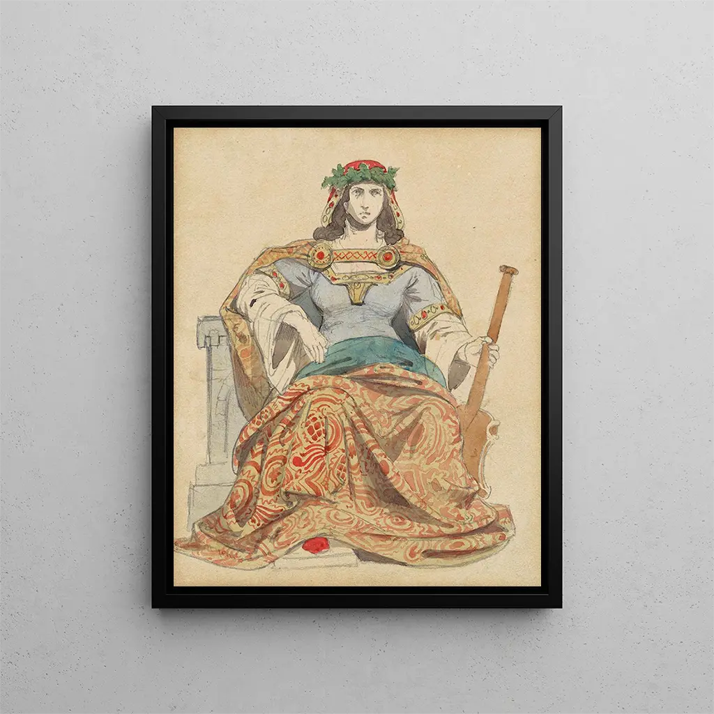 Reproduktion Göttliche weibliche - Emanuel Gottlieb Leutze – Einführung fesselnd Das "Göttliche Weibliche" von Emanuel Gottlieb Leutze ist ein Werk, das über den einfachen Rahmen der Malerei hinausgeht und den Betrachter in eine Welt voller Symbolik und Emotionen eintauchen lässt. Dieses Stück, emblematisch für seine Zeit, evoziert nicht nur Schönheit und Anmut, sondern auch eine spirituelle Tiefe, die zur Kontemplation einlädt. Bei genauer Betrachtung entdeckt man einen subtilen Dialog zwischen dem Heiligen und dem Profanen, eine Dualität, die die Anliegen des Künstlers widerspiegelt. Die Darstellung der Weiblichkeit, sowohl göttlich als auch menschlich, eröffnet einen Interpretationsspielraum, der zum Nachdenken über die Rolle der Frauen in Gesellschaft und Kunst anregt. Stil und Einzigartigkeit des Werks Der Stil von Leutze zeichnet sich durch eine beeindruckende Beherrschung von Licht und Farben aus, die der "Göttlichen Weiblichen" eine lebendige und dynamische Atmosphäre verleihen. Die zarten Nuancen und die auffälligen Kontraste schaffen eine visuelle Harmonie, in der jedes Element zu atmen scheint. Die sorgfältig inszenierte Komposition lenkt den Blick des Betrachters durch eine komplexe visuelle Erzählung. Die Haltung der zentralen Figur, sowohl majestätisch als auch zugänglich, verkörpert eine ruhige Stärke, während die ornamentalen Details, die sie umgeben, eine Dimension von Reichtum und Tiefe hinzufügen. Dieses Werk hebt sich auch durch sein Engagement für universelle Themen hervor, wie Mutterschaft, Weisheit und Schönheit, die durch die Zeiten hindurch widerhallen. Der Künstler und sein Einfluss Emanuel Gottlieb Leutze, in Deutschland geboren und in die Vereinigten Staaten ausgewandert, verstand es, europäische Einflüsse mit einem neuen amerikanischen Kontext zu verbinden. Sein künstlerischer Werdegang ist geprägt von dem Wunsch, Werte wie Freiheit und menschliche Würde zu ehren, Themen, die sich in seinen Werken widerspiegeln. Die "Göttliche Weibliche" reiht sich in diese Linie ein, indem sie die weibliche Kraft feiert und gleichzeitig die Geschlechterstereotypen seiner Zeit hinterfragt. Leutze wurde auch vom romantischen Bewegung beeinflusst, die darauf abzielte, intensive Emotionen auszudrücken und den Geist seiner Zeit einzufangen. Sein Einfluss auf die amerikanische Kunst ist unbestreitbar, und sein Erbe inspiriert weiterhin zahlreiche zeitgenössische Künstler, die die Themen Identität erforschen.