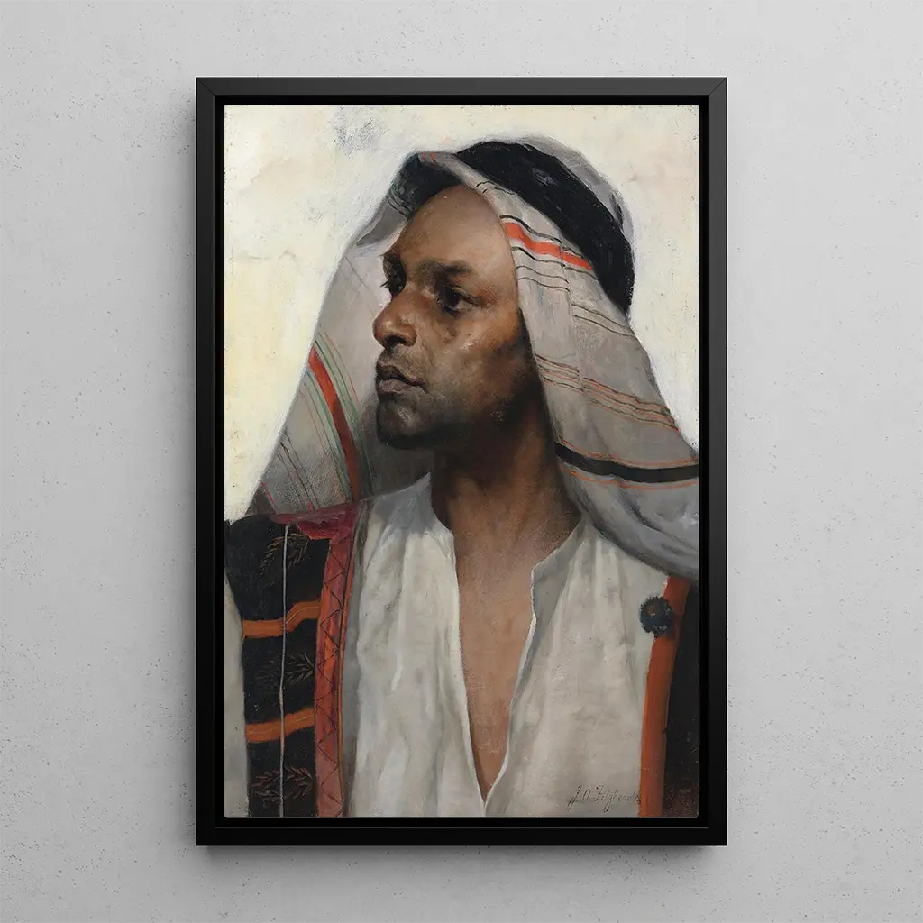 Der arabische Häuptling: eine fesselnde Darstellung des Exotismus „Der arabische Häuptling“ von John Anster Fitzgerald ist ein Werk, das den Betrachter in eine Welt voller Exotik und Geheimnis eintauchen lässt. Dieses Gemälde, reich an Details, zeigt eine charismatische Figur, gekleidet in prächtige traditionelle Kleidung, die durch ihren intensiven Blick eine Geschichte zu erzählen scheint. Die lebendigen Farben und die zarten Texturen, typisch für Fitzgeralds Stil, verleihen der Komposition eine beeindruckende Tiefe. Die Atmosphäre ist zugleich faszinierend und einladend und lädt dazu ein, die verborgenen Geschichten hinter dieser ikonischen Figur zu erkunden. John Anster Fitzgerald: ein Virtuose des viktorianischen Romantizismus John Anster Fitzgerald, aktiv im 19. Jahrhundert, ist ein britischer Künstler, dessen Werk häufig mit der romantischen Bewegung in Verbindung gebracht wird. Beeinflusst von orientalischen Erzählungen und Legenden, konnte er das kollektive Vorstellungsvermögen seiner Zeit durch lebendige und evocative Werke einfangen. Seine Meisterschaft in Farbe und Licht sowie seine Liebe zum Detail ermöglichten es ihm, sich in der viktorianischen Kunstszene hervorzuheben. Fitzgerald war auch ein Vorreiter bei der Erforschung exotischer Themen und bot eine einzigartige Perspektive auf ferne Kulturen, was ihm einen bedeutenden Platz in der Kunstgeschichte einbrachte. Eine dekorative Reproduktion mit vielfältigen Vorzügen Die Reproduktion des „arabischen Häuptlings“ ist eine dekorative Wahl, die Ihren Wohnraum mit einem Hauch von Eleganz und Geheimnis bereichern wird. Ob im Wohnzimmer, im Büro oder im Schlafzimmer – dieses Kunstwerk zieht den Blick auf sich und weckt die Neugier. Die Qualität der Reproduktion garantiert eine bemerkenswerte Treue zum Originalwerk, sodass jedes Detail und jeder Farbton geschätzt werden kann. Durch die Integration dieses Kunstwerks in Ihre Dekoration schaffen Sie eine raffinierte und fesselnde Atmosphäre und feiern gleichzeitig das künstlerische Erbe von John Anster Fitzgerald.