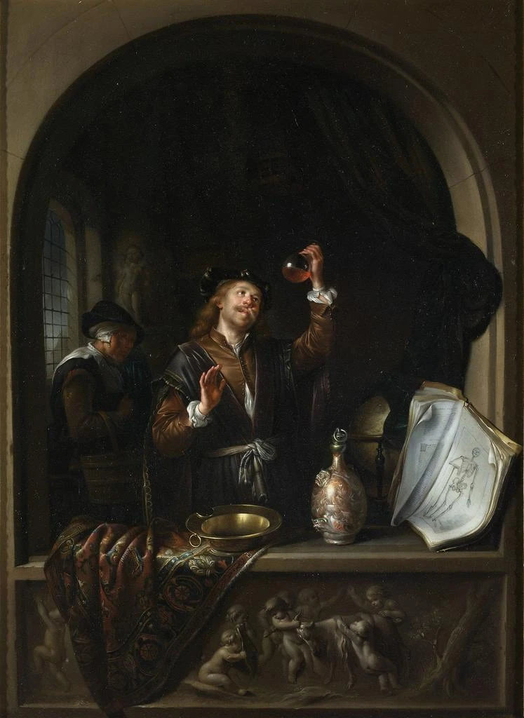Gerrit Dou, geboren 1613 in Leiden, ist ein bedeutender niederländischer kunstdruckmaler des 17. Jahrhunderts, der oft mit der Leiden-Schule der Malerei in Verbindung gebracht wird. Schüler Rembrandts, entwickelte er einen einzigartigen Stil, der durch eine sorgfältige Aufmerksamkeit für Details und eine außergewöhnliche Beherrschung des Lichts gekennzeichnet ist. Dou malte hauptsächlich Genreszenen, die das tägliche Leben und menschliche Interaktionen in den Vordergrund stellen. Sein Einfluss auf die niederländische Kunst ist unbestreitbar, und seine Werke werden weiterhin für ihre Fähigkeit bewundert, flüchtige Momente mit bemerkenswerter Präzision einzufangen. Durch seine Gemälde bietet er einen faszinierenden Einblick in die Gesellschaft seiner Zeit.