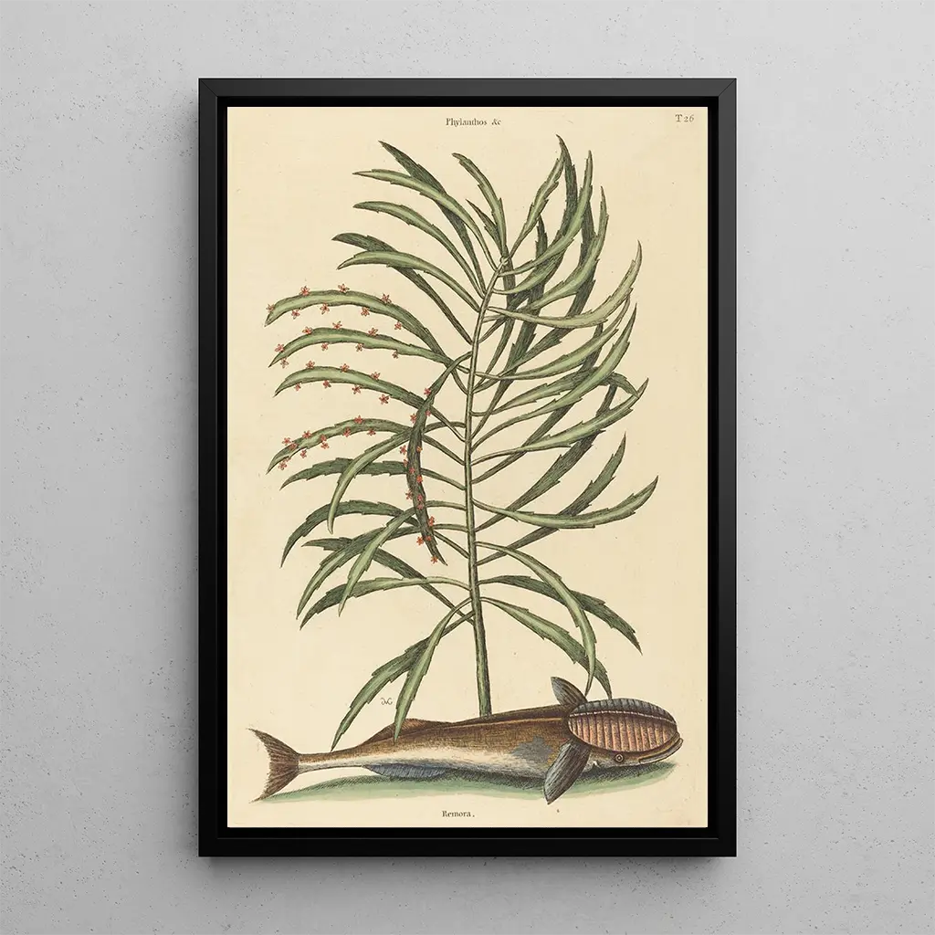 Le poisson saucisse Echeneis naucratis : ein faszinierender aquatischer Tanz Das Kunstwerk "Le Poisson Suceur Echeneis naucratis" von Mark Catesby entführt uns in die Wasserwelt mit bemerkenswerter Präzision. Dieses Werk, geschaffen mit lebendigen Farben und detaillierten Feinheiten, fängt die Schönheit dieses saugenden Fisches in seinem natürlichen Lebensraum ein. Die Nuancen von Blau und Grün erinnern an die Klarheit tropischer Gewässer, während die zarte Textur der Schuppen mit einer Maltechnik wiedergegeben wird, die großes Können zeigt. Die Atmosphäre, die von diesem Gemälde ausgeht, lädt zum Staunen und zur Kontemplation ein und offenbart die Komplexität und Harmonie des Meereslebens. Mark Catesby : Pionier der naturalistischen Illustration Mark Catesby, ein englischer Naturforscher und Illustrator des 18. Jahrhunderts, ist bekannt für seine Beiträge zur Erforschung der amerikanischen Fauna und Flora. Sein Werk steht an der Schnittstelle zwischen Kunst und Wissenschaft und markierte eine Epoche, in der die Erforschung und Dokumentation der Arten im Aufschwung waren. Beeinflusst von Reisen in Nordamerika, konnte Catesby die natürliche Vielfalt mit einem einzigartigen künstlerischen Blick festhalten. Seine Illustrationen, wie die des "Poisson Suceur", gelten als Referenzen im Bereich der naturalistischen Illustration und zeugen von der Bedeutung seiner Arbeit in der Geschichte der Kunst und Naturwissenschaften. Eine dekorative Anschaffung mit vielfältigem Nutzen Der kunstdruck des "Poisson Suceur Echeneis naucratis" ist ein dekoratives Stück, das Ihr Interieur bereichern wird, sei es im Wohnzimmer, Büro oder Schlafzimmer. Seine Druckqualität und seine Treue zum Originalwerk garantieren eine unbestreitbare ästhetische Anziehungskraft. Durch die Integration dieses Gemäldes in Ihre Dekoration verleihen Sie Ihrem Raum eine Note von Eleganz und Neugier, während Sie die Schönheit der Natur feiern. Diese künstlerische Wahl wird sicherlich Gespräche anregen und eine einzigartige Dimension in Ihren Lebensraum bringen.