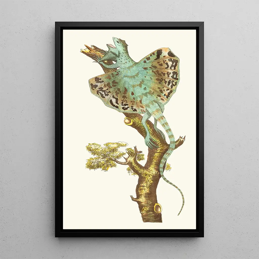 Der fliegende Drache: ein majestätischer Tanz am Himmel Das Gemälde "Der fliegende Drache" von George Shaw zeigt eine Luftszene, in der ein majestätischer Drache in den Himmel aufsteigt. Die lebendigen Farben, die Nuancen von tiefblau und leuchtendem Rot vermischen, schaffen eine Atmosphäre, die sowohl mystisch als auch dynamisch ist. Shaw's Technik, die Realismus und fantastische Elemente verbindet, verleiht dieser legendären Kreatur Leben. Die detaillierten Schuppen und ausgebreiteten Flügel fügen dem Werk eine fast tastbare Dimension hinzu und laden den Betrachter ein, in eine Welt einzutauchen, in der Natur und Mythos aufeinandertreffen. George Shaw: ein Pionier der fantastischen Kunst George Shaw, britischer Künstler des 19. Jahrhunderts, ist bekannt für seine Werke, die die natürliche Welt und das Fantastische verschmelzen lassen. Beeinflusst von den künstlerischen Bewegungen seiner Zeit, entwickelte er einen einzigartigen Stil, der die Schönheit mythologischer Kreaturen in den Vordergrund stellt. Seine Arbeit entstand in einer Epoche, in der das Interesse an Folklore und Legenden florierte, was Shaw ermöglichte, sich durch mutige Darstellungen hervorzuheben. Sein künstlerisches Erbe inspiriert weiterhin viele zeitgenössische Künstler und zeugt von der Bedeutung seines Werks in der Kunstlandschaft. Eine dekorative Anschaffung mit vielfältigen Vorzügen Der kunstdruck des Gemäldes "Der fliegende Drache" ist ein ideales Dekorationsstück, um Ihr Zuhause zu bereichern, sei es im Wohnzimmer, Büro oder Schlafzimmer. Seine Druckqualität garantiert eine bemerkenswerte Treue zu den Details des Originalwerks und verleiht Ihrer Dekoration eine besondere Note. Mit seinem unbestreitbaren ästhetischen Reiz wird dieses Leinwandbild die Blicke auf sich ziehen und Gespräche anregen, wodurch Ihr Raum zu einem Ort der Flucht und Träume wird. Gönnen Sie sich dieses Werk, um Ihre Umgebung in ein wahres künstlerisches Refugium zu verwandeln.