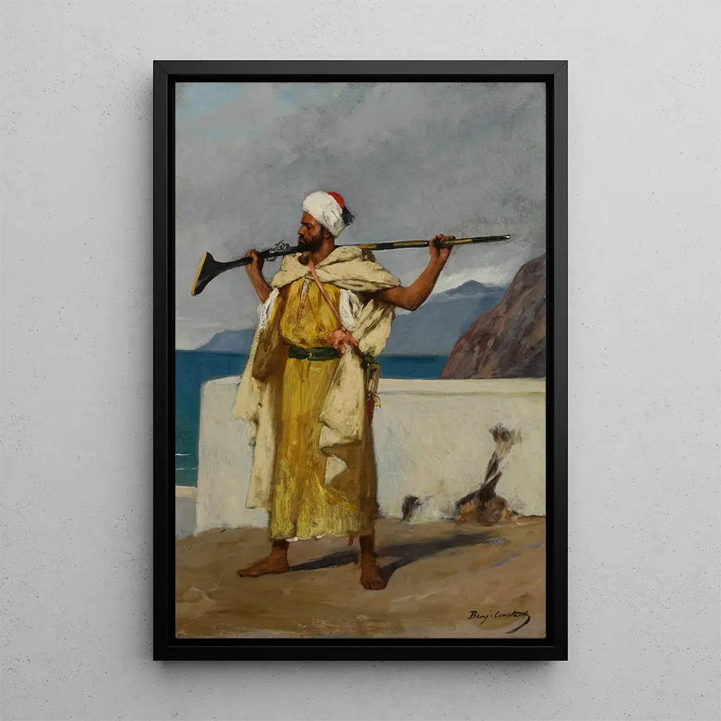 Le Garde : ein Moment der Gelassenheit, der in der Zeit eingefroren ist „Le Garde“ von Jean-Joseph Benjamin-Constant ist ein Werk, das die Essenz der Ruhe einfängt. Diese Leinwand zeigt einen Mann in Wachhaltung, eingehüllt in reiche und farbenfrohe Drapierungen. Die Nuancen von Blau und Rot verschmelzen harmonisch und schaffen eine Atmosphäre, die sowohl friedlich als auch faszinierend ist. Die Technik des Künstlers, die Präzision und Flüssigkeit vereint, ermöglicht es, die Details der Stoffe und menschlichen Ausdrücke zu schätzen. Dieses Gemälde ruft eine kontemplative Pause hervor, einen schwebenden Moment, in dem die Zeit zu stillstehen scheint, um der Schönheit Platz zu machen. Jean-Joseph Benjamin-Constant : der Orientalismus zu Ehren Jean-Joseph Benjamin-Constant ist ein französischer Maler, der das Ende des 19. Jahrhunderts mit seinen orientalistischen Werken prägte. Seine Leidenschaft für den Orient, genährt durch seine Reisen, ermöglichte es ihm, Kompositionen zu schaffen, die reich an Farben und Emotionen sind. Beeinflusst vom Realismus und Impressionismus, konnte er das Licht und die Atmosphären seiner Motive einfangen. Benjamin-Constant ist auch bekannt für seine Rolle als Lehrer, der zahlreiche Künstler ausgebildet hat, die sein Erbe weiterführten. Seine Arbeit bleibt eine Referenz im Bereich des orientalistischen Malens und feiert die Schönheit exotischer Kulturen. Eine dekorative Anschaffung mit vielfältigen Vorzügen Die Reproduktion von „Le Garde“ ist eine ideale Wahl, um Ihre Inneneinrichtung zu bereichern. Ob im Wohnzimmer, Büro oder Schlafzimmer, dieses Kunstwerk verleiht Eleganz und Gelassenheit. Die Druckqualität und die Treue zum Originalwerk garantieren eine beeindruckende visuelle Darstellung. Durch die Integration dieses Kunstdrucks in Ihren Raum schaffen Sie eine beruhigende und raffinierte Atmosphäre und setzen gleichzeitig ein Kunstwerk in Szene, das Bewunderung hervorruft. Die ästhetische Anziehungskraft von „Le Garde“ macht es zu einer wertvollen Ergänzung jeder Kunstsammlung.
