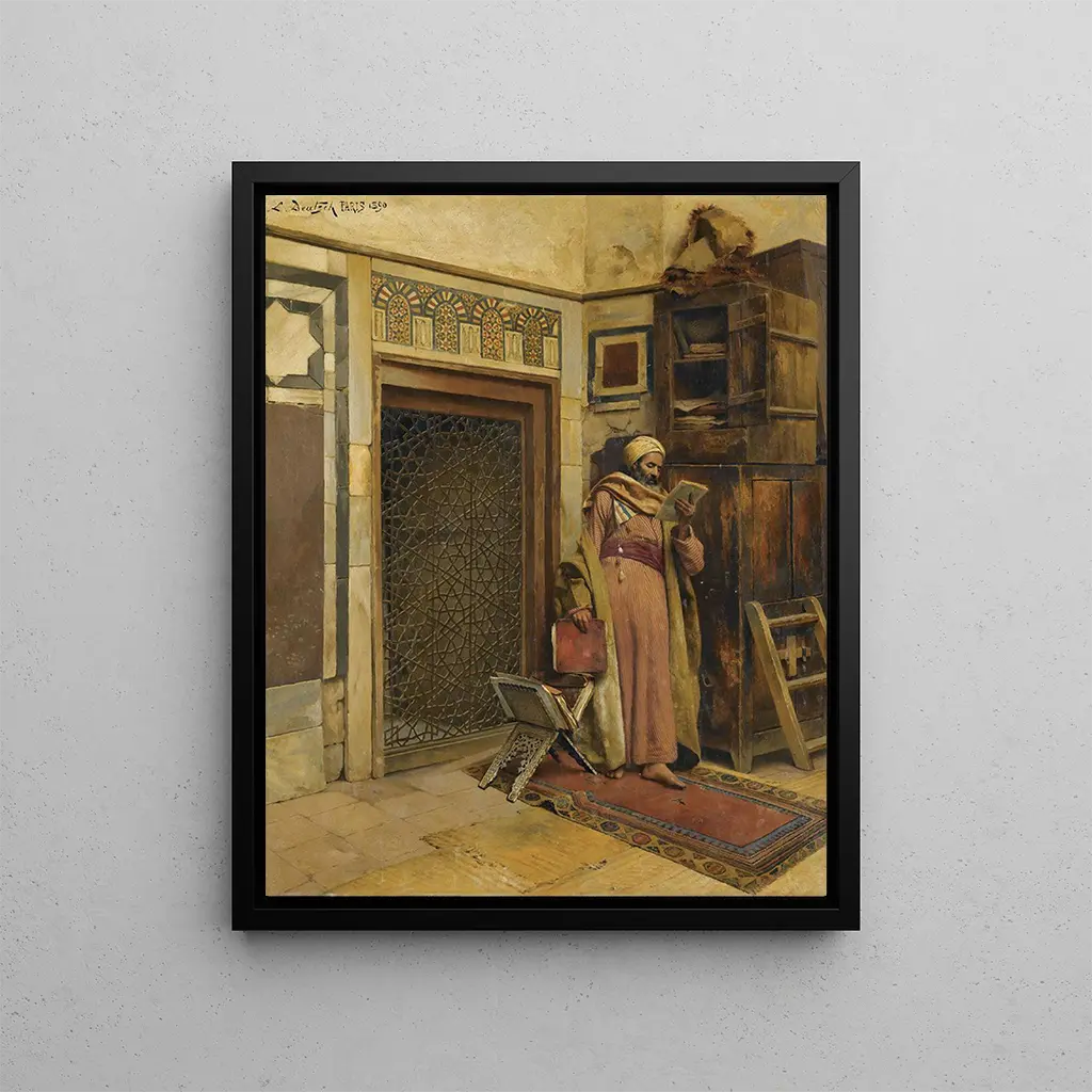 Le Savant : eine Erforschung des Wissens In Le Savant taucht Ludwig Deutsch in eine Welt der Weisheit und Reflexion ein. Dieses Gemälde zeigt einen Gelehrten, umgeben von alten Büchern und wissenschaftlichen Instrumenten, Symbolen der Wissenssuche. Die reichen Farbtöne und die zarten Schatten schaffen eine Atmosphäre der Gelassenheit und Konzentration, während das Licht die Details der umgebenden Objekte hervorhebt. Jedes Element der Komposition scheint eine Geschichte zu erzählen und lädt den Betrachter ein, über Wissen und intellektuelle Neugier nachzudenken, was diese reproduction des Savant zu einem Werk macht, das sowohl inspirierend als auch kontemplativ ist. Ludwig Deutsch : ein Virtuose des Orientalismus Ludwig Deutsch, österreichischer Maler des 19. Jahrhunderts, ist bekannt für seine orientalistisch inspirierten Werke, die das Wesen der Kulturen des Nahen Ostens einfangen. Beeinflusst von seinen Reisen nach Ägypten und in die Türkei, zeichnet sich Deutsch durch die Darstellung alltäglicher Szenen aus, die Realismus und Romantik verbinden. Sein akribischer Stil und seine Fähigkeit, mit Licht und Texturen zu spielen, machen ihn zu einem bedeutenden Vertreter des orientalistischen Bewegungs. Durch seine Gemälde lädt Deutsch dazu ein, eine Welt voller Farben und Traditionen zu entdecken, während er gleichzeitig die westlichen Wahrnehmungen des Orients hinterfragt. Eine dekorative Anschaffung mit vielfältigen Vorteilen Die reproduction des Savant ist eine ideale dekorative Wahl für diejenigen, die ihren Wohnraum bereichern möchten. Ob im Büro, in einer Bibliothek oder im Wohnzimmer, dieses Leinwandbild verleiht einen Hauch von Eleganz und Raffinesse. Die Druckqualität und die Treue zum Originalwerk garantieren eine beeindruckende visuelle Darstellung, die alle Aufmerksamkeit auf sich zieht. Durch die Integration dieses Gemäldes in Ihre Dekoration treffen Sie die Wahl für ein Werk, das nicht nur Ihr Interieur verschönert, sondern auch eine tiefgründige Reflexion über Wissen und Weisheit hervorruft und so eine intellektuelle Dimension in Ihren Raum bringt.