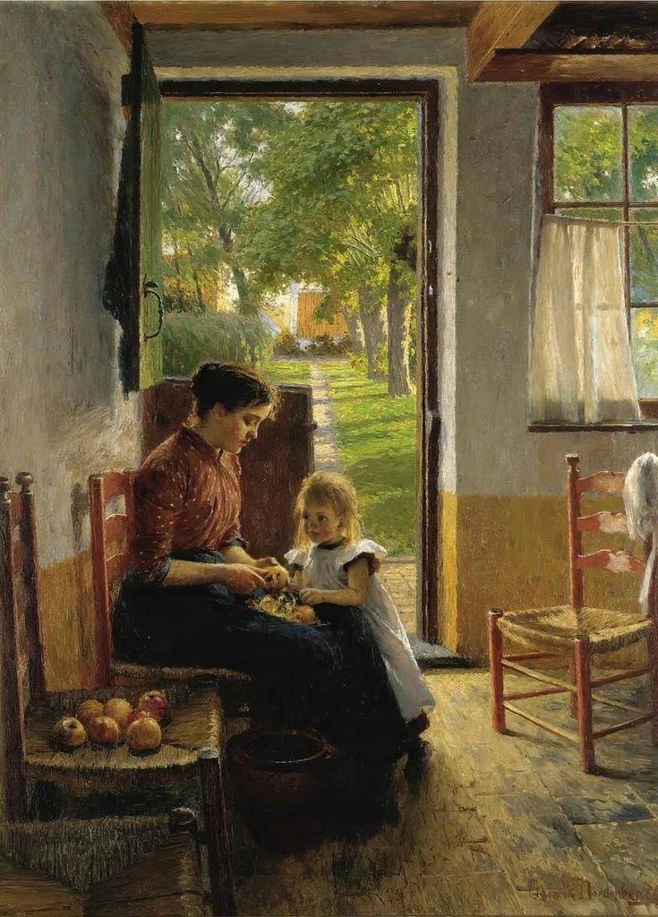 Henrik Nordenberg, aktiv am Ende des 19. Jahrhunderts, ist ein norwegischer Künstler, dessen Werk im Stil des Realismus steht. Beeinflusst von den großen Meistern seiner Zeit, sucht er, das tägliche Leben mit einer besonderen Sensibilität darzustellen. Nordenberg zeichnet sich durch seine Fähigkeit aus, einfache, aber emotionale Momente einzufangen, wie dieses Werk zeigt. Seine künstlerische Herangehensweise spiegelt die sozialen Anliegen seiner Epoche wider, in der die Kindheit und die Familie eine zentrale Rolle in der Gesellschaft spielen. Durch die Hervorhebung dieser Themen trägt er zur Entwicklung der skandinavischen Kunst hin zu einer persönlicheren und menschlicheren Darstellung bei.