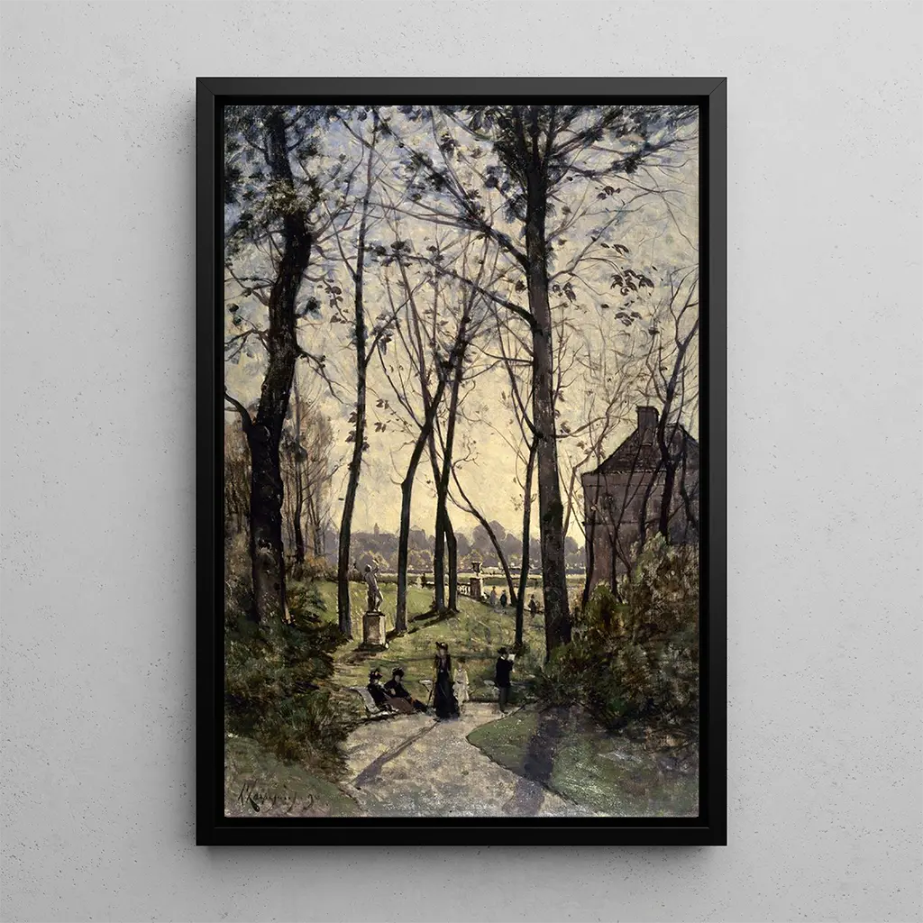 "Le jardin du Luxembourg" ist ein ikonisches Werk von Henri-Joseph Harpignies, das die Essenz des Pariser Lebens einfängt. Diese Leinwand zeigt eine grüne Landschaft, in der von Bäumen gesäumte Wege und blühende Beete zum Flanieren einladen. Die leuchtenden Farben, von strahlendem Grün bis hin zu Farbtupfern der Blumen, schaffen eine fröhliche und lebendige Atmosphäre. Die Technik des Künstlers, die Realismus und Impressionismus verbindet, erweckt diese lebendige Szene zum Leben, in der die Spaziergänger zu versinken scheinen in der Schönheit des Gartens. Jedes Detail, von den Bänken bis zu den Statuen, trägt zur Harmonie dieser Komposition bei und evoziert einen Moment des Friedens im Herzen des urbanen Trubels.