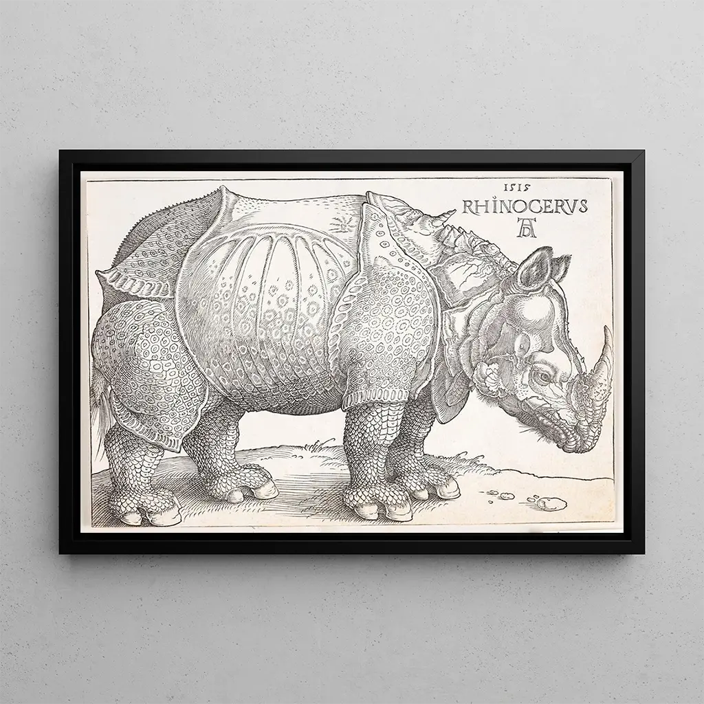 Der Rhinocéros: eine mythische Kreatur mit durchdringendem Blick Der Rhinocéros von Albrecht Dürer ist ein ikonisches Kunstwerk, das durch seine beeindruckende Realitätsnähe und Detailgenauigkeit fasziniert. Erschaffen im Jahr 1515, zeigt diese Holzschnitt-Druck eine exotische und mysteriöse Kreatur für die damalige Zeit, mit einer reichen Textur und zarten Schatten, die der Szene Leben einhauchen. Die präzisen Linien und die Kontraste von Licht und Schatten schaffen eine majestätische und zugleich faszinierende Atmosphäre, die den Betrachter dazu einlädt, über die Natur dieses faszinierenden Wesens nachzudenken. Die Komposition, obwohl statisch, vermittelt ein Gefühl von Kraft und Stärke und offenbart gleichzeitig die Neugier des Künstlers für die natürliche Welt. Albrecht Dürer: Meister der deutschen Renaissance Albrecht Dürer zählt zu den einflussreichsten Künstlern der deutschen Renaissance, bekannt für seine technischen Innovationen und seinen humanistischen Kunstansatz. Geboren 1471 in Nürnberg, wurde er in der Werkstatt seines Vaters, eines Goldschmieds, ausgebildet, bevor er durch Europa reiste, um sich bei italienischen Meistern inspirieren zu lassen. Dürer integrierte Elemente der italienischen Malerei in seinen eigenen Stil, bewahrte jedoch eine nordische Sensibilität. Sein Werk, das Gravuren, Gemälde und Zeichnungen umfasst, zeugt von seinem Interesse an Naturwissenschaften und Anatomie und macht ihn zu einem Pionier in der Erforschung der lebenden Welt. Der Rhinocéros, obwohl eine Darstellung eines exotischen Tieres, zeigt perfekt sein Talent, die Realität mit unvergleichlicher Präzision einzufangen. Eine dekorative Anschaffung mit vielfältigen Vorteilen Der kunstdruck des Rhinocéros ist ein dekoratives Stück, das sich harmonisch in verschiedene Räume integrieren lässt, sei es im Wohnzimmer, im Büro oder im Schlafzimmer. Seine Druckqualität und die Treue zum Originalwerk machen ihn zur idealen Wahl für Kunstliebhaber und Sammler. Durch das Hinzufügen dieses Bildes zu Ihrer Dekoration verleihen Sie Ihrem Interieur eine Note von Eleganz und Gelehrsamkeit. Die ästhetische Anziehungskraft dieses Leinwanddrucks liegt nicht nur in seinem fesselnden Motiv, sondern auch darin, wie es den Geist einer faszinierenden Epoche evoziert und gleichzeitig die Neugier und Bewunderung Ihrer Gäste weckt.