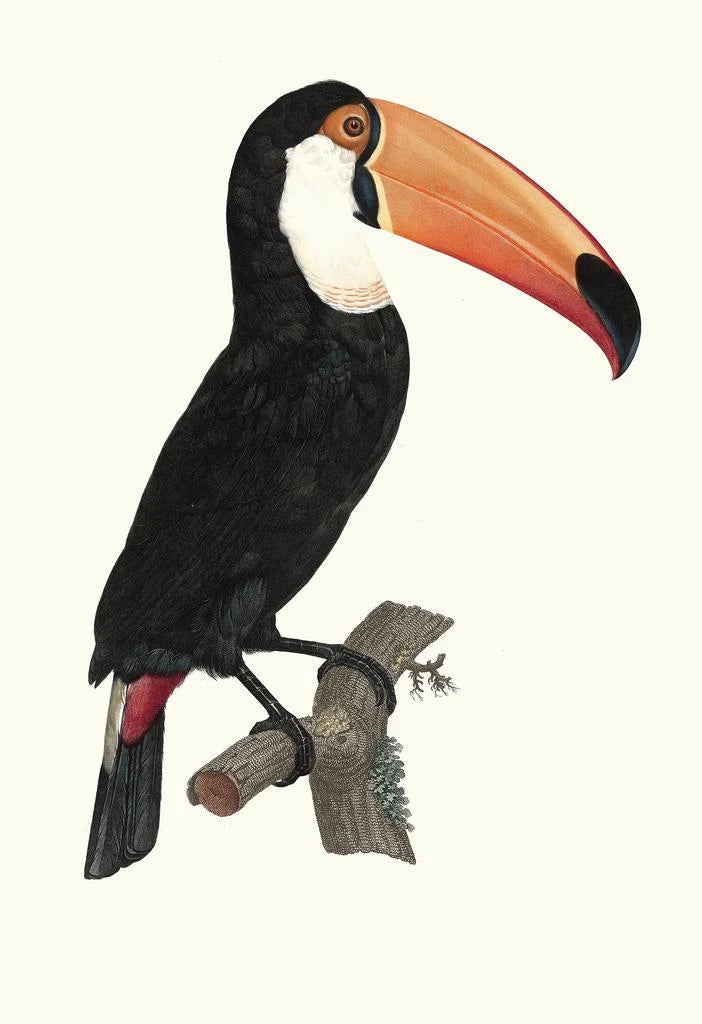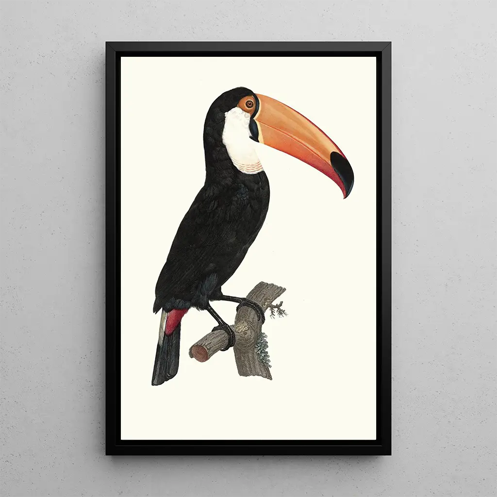 Der Toco: ein majestätisches Porträt der tropischen Fauna In diesem fesselnden Werk präsentiert Jacques Barraband den Toco, einen emblematischen Tukan mit leuchtenden Farben. Der Kontrast zwischen dem Schwarz seines Gefieders und dem leuchtend Gelb seines Schnabels schafft eine beeindruckende Komposition, die sofort ins Auge fällt. Die sorgfältige Technik von Barraband, die Aquarell und Gouache verwendet, verleiht dieser kunstdruck eine bemerkenswerte Tiefe und Helligkeit. Die Atmosphäre, die von diesem Gemälde ausgeht, ist zugleich exotisch und faszinierend und entführt den Betrachter in die üppigen Dschungel Südamerikas. Jacques Barraband: ein Meister der naturwissenschaftlichen Illustration Jacques Barraband, französischer Künstler des frühen 19. Jahrhunderts, ist berühmt für seine ornithologischen Illustrationen, die wissenschaftliche Präzision und künstlerische Sensibilität verbinden. Beeinflusst von den naturwissenschaftlichen Entdeckungen seiner Zeit, konnte er das Wesen der Vögel mit akribischer Liebe zum Detail einfangen. Barraband arbeitete mit Naturforschern und Entdeckern zusammen, was sein Werk um eine dokumentarische Dimension bereicherte. Seine Kreationen, die oft in Fachwerken veröffentlicht wurden, prägten die Kunstgeschichte und inspirieren weiterhin Natur- und Kunstliebhaber. Eine dekorative Anschaffung mit vielfältigen Vorzügen Der kunstdruck des Toco ist eine ideale dekorative Wahl, um Ihren Wohnraum zu bereichern. Ob im Wohnzimmer, im Büro oder im Schlafzimmer, dieses Bild bringt einen Hauch von Exotik und Farbe. Seine Druckqualität garantiert eine detailgetreue Wiedergabe des Originalwerks, sodass Sie das Talent von Barraband voll und ganz genießen können. Mit seiner ästhetischen Anziehungskraft wird diese Leinwand zu einem zentralen Element Ihrer Dekoration und feiert gleichzeitig die Schönheit und Vielfalt der tropischen Fauna.