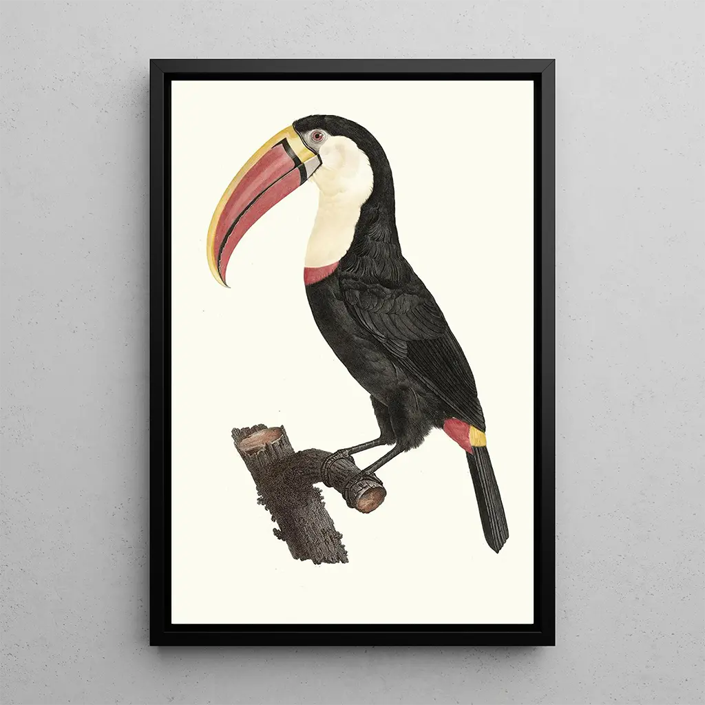 Le Toucan : ein Symbol der tropischen Natur Der Toucan, ein faszinierendes Werk von Jacques Barraband, entführt uns in das Herz der tropischen Wälder. Mit seinen leuchtenden Farben und seinem ikonischen Schnabel fängt dieses Bild die Essenz der exotischen Fauna ein. Barraband, ein wahrer Virtuose, verwendet brillante Nuancen von Gelb, Grün und Schwarz, um diesem majestätischen Vogel Leben einzuhauchen. Die Komposition ist sorgfältig ausbalanciert, jedes Detail wird minutiös wiedergegeben, was eine Atmosphäre schafft, die zugleich dynamisch und ruhig ist. Das Werk lädt zur Betrachtung ein und offenbart die Schönheit und Vielfalt der Natur durch die Linse eines leidenschaftlichen Künstlers. Jacques Barraband : ein Pionier der ornithologischen Illustration Jacques Barraband, aktiv zu Beginn des 19. Jahrhunderts, gilt als einer der größten naturalistischen Illustratoren seiner Zeit. Seine Werke, oft inspiriert von wissenschaftlichen Expeditionen, zeugen von tiefem Respekt für die Natur und dem Wunsch, sie präzise darzustellen. Barraband hat die Essenz exotischer Vögel, wie den Toucan, eingefangen, indem er Kunst und Wissenschaft vereinte. Sein unverwechselbarer Stil, geprägt von leuchtenden Farben und einer minutiösen Detailgenauigkeit, hat zahlreiche Künstler und Naturforscher beeinflusst. Der Toucan ist ein perfektes Beispiel für sein Talent und zeigt sein Engagement für eine treue Darstellung der Biodiversität. Eine dekorative Anschaffung mit vielfältigen Vorteilen Der kunstdruck des Toucan ist eine dekorative Wahl, die jedem Raum einen Hauch von Exotik und Frische verleiht. Ob im Wohnzimmer, im Büro oder im Schlafzimmer, dieses Bild zieht die Aufmerksamkeit auf sich und bereichert die Atmosphäre Ihres Interieurs. Seine Druckqualität garantiert eine außergewöhnliche Farbtreue und Detailgenauigkeit des Originalwerks, sodass Sie die Schönheit dieser ornithologischen Illustration im Alltag genießen können. Durch die Integration dieses Leinwandbildes in Ihre Dekoration wählen Sie ein künstlerisches Element, das die Vielfalt der Natur feiert und gleichzeitig eine elegante Note in Ihren Wohnraum bringt.