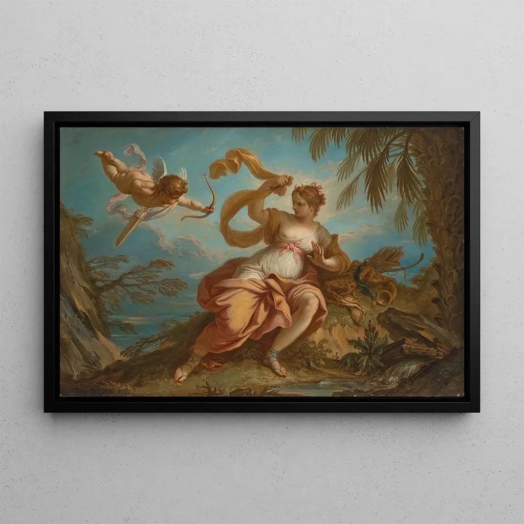 Jacques Dumont, der im 18. Jahrhundert aktiv war, ist ein französischer Maler, der für seinen Rokoko-Stil bekannt ist, der sich durch elegante Kompositionen und eine besondere Liebe zum Detail auszeichnet. Beeinflusst von den großen Meistern seiner Zeit, konnte er sich durch seine Fähigkeit durchsetzen, Mythologie und Sinnlichkeit zu verbinden. Seine Karriere, geprägt von Aufträgen der Adelsgesellschaft, zeugt von der Bedeutung seiner Arbeit in der künstlerischen Landschaft jener Epoche. "Diane und Amor" reiht sich in diese Tradition ein und zeigt die Vorliebe für raffinierte Ästhetik und mythologische Themen, die in den Pariser Salons vorherrschten.