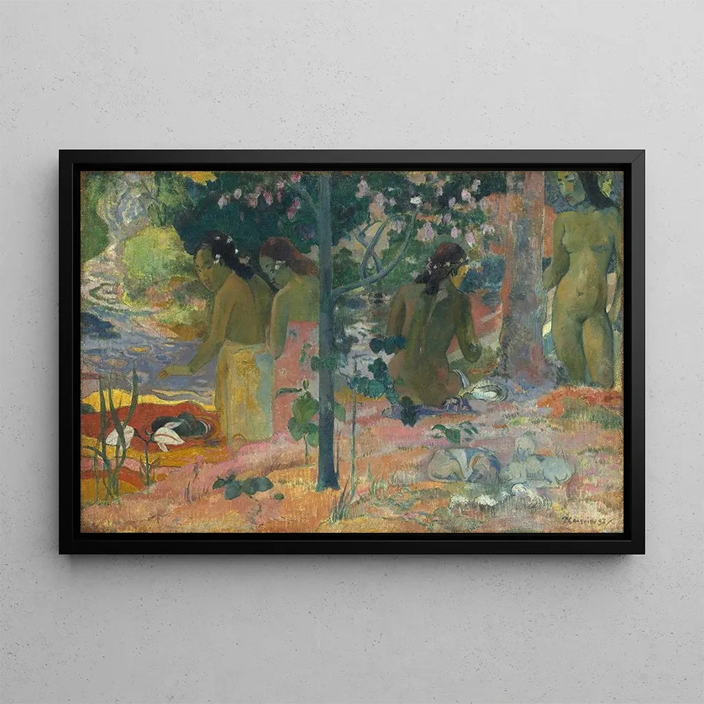 Les baigneurs : eine Ode an das unbeschwerte Leben In diesem lebendigen Werk taucht Paul Gauguin in eine Welt ein, in der Natur und Menschheit in perfekter Harmonie aufeinandertreffen. Die baigneurs, vom Licht durchflutet, sonnen sich am Wasser, umgeben von üppigen Landschaften. Die warmen und gesättigten Farben, typisch für den post-impressionistischen Stil, vermitteln eine Atmosphäre von Gelassenheit und Freude. Die Technik des breiten, expressiven Pinselstrichs Gauguins erweckt jede Figur zum Leben und schafft eine Szene, die zugleich dynamisch und friedlich ist. Dieses Gemälde lädt zur Kontemplation und Flucht ein – ein wahres Lebensbild, in dem die Zeit stillzustehen scheint. Paul Gauguin : der Vorreiter des Symbolismus Ikonischer Künstler der post-impressionistischen Bewegung, Paul Gauguin hat sich durch seinen mutigen Stil und seine Suche nach einer tieferen künstlerischen Ausdrucksform durchgesetzt. Geboren 1848, wurde er von Künstlern wie Vincent van Gogh und Camille Pissarro beeinflusst, entwickelte aber schnell seine eigene Vision. Seine tahitische Periode, in der er versuchte, der westlichen Zivilisation zu entkommen, markierte einen Wendepunkt in seinem Werk und ermöglichte es ihm, Themen im Zusammenhang mit Natur, Spiritualität und Kultur zu erforschen. Die baigneurs sind ein perfektes Beispiel dafür und veranschaulichen seinen Wunsch, das Wesen des einfachen und authentischen Lebens einzufangen. Eine dekorative Anschaffung mit vielfältigen Vorteilen Die Wahl einer kunstdruck-Reproduktion von Les baigneurs ist die Entscheidung für ein zentrales Stück, das Ihr Interieur verschönern wird. Ob im Wohnzimmer, Büro oder Schlafzimmer – dieses Bild verleiht Ihrer Dekoration eine exotische und warme Note. Die Qualität der kunstdruck-Reproduktion garantiert eine Treue zu den Farben und Details des Originalwerks, sodass Sie seine ästhetische Anziehungskraft voll genießen können. Durch die Integration dieses Gemäldes in Ihren Raum laden Sie nicht nur künstlerische Schönheit ein, sondern auch eine Atmosphäre der Ruhe und Reflexion, sodass jeder Blick zu einem Moment des Genusses wird.
