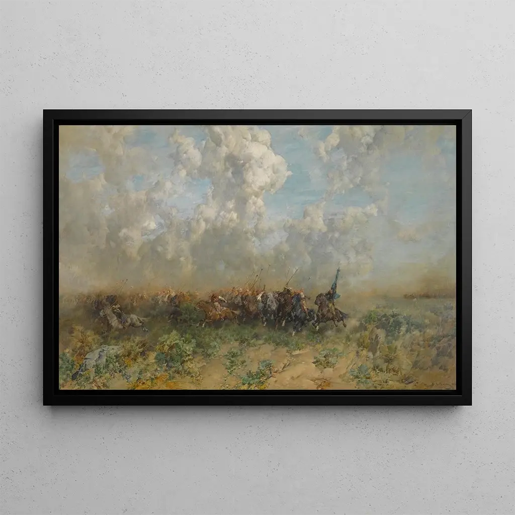 La Déroute : ein visuelles Drama im Herzen der Geschichte „La Déroute“ von Alberto Pasini ist ein kunstreproduktion, die eine spürbare Spannung und eine bewegende Erzählung vermittelt. Dieses Gemälde zeigt eine Kampfszene, in der Soldaten in der Flucht mit Verzweiflung und Verwirrung konfrontiert werden. Die dunklen Farben und die eindrucksvollen Kontraste verstärken die Emotionen der Szene, während Pasinis Technik, die Realismus und Romantik verbindet, jedem Charakter Leben einhaucht. Die Atmosphäre ist von Verzweiflung geprägt, aber auch von einer tragischen Schönheit, die das Talent des Künstlers zeigt, die menschliche Essenz in Krisenmomenten einzufangen. Alberto Pasini : ein Zeuge der Umbrüche seiner Zeit Alberto Pasini, geboren 1826, ist ein italienischer maler, dessen Arbeit sich auf die Themen Orient und militärische Konflikte konzentriert. Ausgebildet an der Akademie der Schönen Künste von Parma, entwickelt er einen Stil, der reich an Details und Farben ist, beeinflusst von seinen Reisen im Orient. Pasini ist bekannt für seine Fähigkeit, historische Szenen mit großer Präzision darzustellen, und „La Déroute“ ist eines seiner bedeutendsten Werke. Durch seine Gemälde bietet er einen Einblick in die sozialen und politischen Umbrüche seiner Epoche und schafft gleichzeitig eine emotionale Verbindung zum Betrachter. Eine dekorative kunstdruck mit vielfältigen Vorteilen Die kunstdruck von „La Déroute“ ist eine faszinierende Ergänzung für jede kunstsammlung und verleiht Ihrem Raum eine historische und emotionale Tiefe. Ob im Büro, Wohnzimmer oder Ausstellungsraum, dieses Gemälde zieht den Blick auf sich und regt Gespräche an. Die Druckqualität garantiert eine bemerkenswerte Farbtreue und Detailgenauigkeit des Originalwerks, sodass die Kraft der Szene vollständig spürbar wird. Mit dieser kunstdruck wählen Sie ein Stück, das künstlerische Schönheit mit Reflexion über die Geschichte verbindet und Ihre Dekoration um eine Note von Gelehrsamkeit und Stil bereichert.