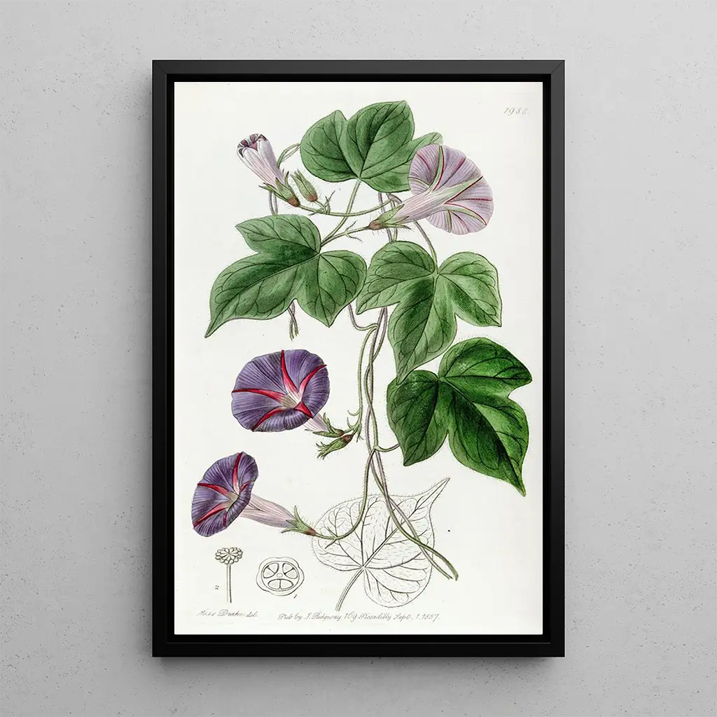 In diesem lebendigen Werk fängt Sydenham Edwards die zarte Schönheit des großen dreilappigen Wilderweins ein. Die Nuancen von Grün und Violett verschmelzen zu einer Atmosphäre, die sowohl beruhigend als auch dynamisch wirkt. Die Aquarelltechnik ermöglicht eine fließende Farbgestaltung, während die feinen Details der Blätter und Blüten einen tiefen Respekt für die Natur zeigen. Jeder Blütenblatt scheint zum Leben zu erwachen und lädt den Betrachter ein, in diese florale Welt einzutauchen. Dieser kunstdruck des großen dreilappigen Wilderweins ist viel mehr als eine einfache Darstellung; er evoziert eine intime Verbindung zur Pflanzenwelt.
