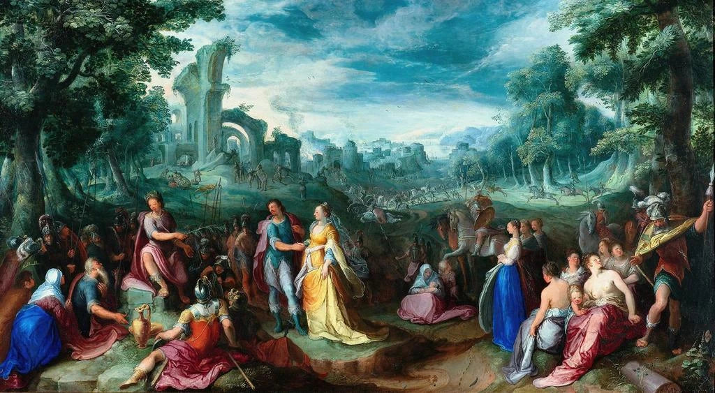 „La Continence de Scipion“ von Karel van Mander ist ein faszinierendes Kunstwerk, das einen entscheidenden Moment der römischen Geschichte darstellt, in dem der Held Scipion der Versuchung widersteht. Die dynamische Komposition, mit ausdrucksstarken Figuren und fließenden Drapierungen, zieht sofort den Blick auf sich. Die reichen und lebendigen Farben, von tiefroten bis zu strahlenden Goldtönen, verstärken die dramatische Intensität der Szene. Van Mander gelingt es durch seine technische Meisterschaft, starke Emotionen zu vermitteln, wodurch dieses Gemälde zu einem wahren narrativen Meisterwerk wird.